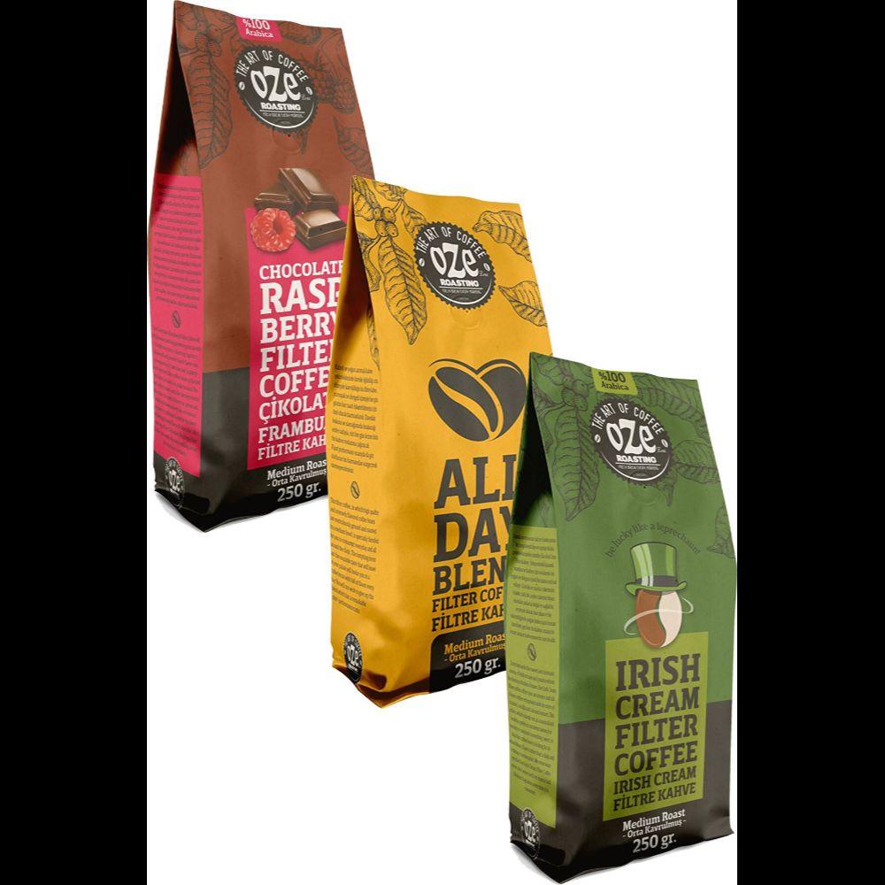 Ароматизированный фильтр-кофе Meet Set Ирландские сливки, All Day Blend, Шоколадная малина 3 шт. 250г