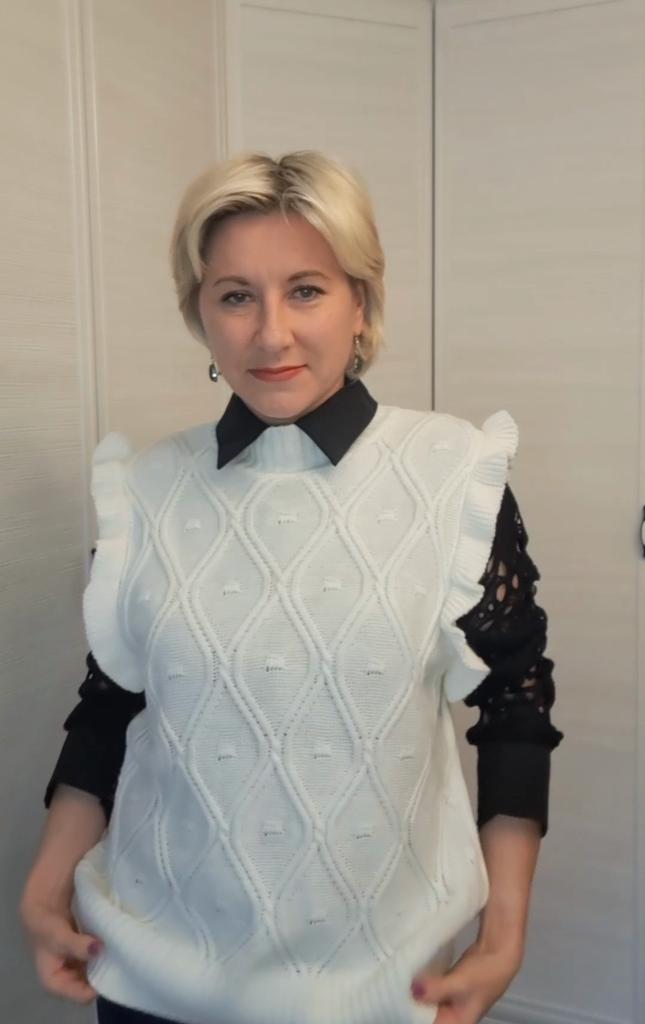 Романтическая жилетка👌💯 🟥 Фотообзор + видео 🎥 🟥 Жду вас на моем Telegram канале 🔎 ЕвгенияДжум 💕💕💕 где всегда свежие промокоды, обзоры на купленные товары и общение👍 Присоединяйтесь💐🌷🥰 🟥 Жилетка с ажурными рукавами, качество отличное, этикетка присутствует, 100% акрил, очень мягкий и комфортный 🟥 Высокий ворот резинка, по низу жилетки идёт резинка, вязка у жилетки мягкая не плотная, вырез у рукавов большой, на мне размер L, села не мне очень свободно, можно было бы смело брать размер S Мои параметры ⬇️⬇️⬇️ 💢Рост 173 см 💢Ширина плеч 40 см 💢Объем груди 95 см 💢Объем талии 80 см 💢Объем бёдер 100 см 💢Длина от плеча до запястья 58 см 💢Объём запястья 17 см 🟥 Замеры жилетки в размере XL ✅️Ширина плеч 43 см ✅️Объем груди 110 см ✅️Длина жилетки 69 см Подойдёт для любительниц романтического образа, отлично сочетается с рубашками, рекомендую👌 🟥 Удачи на просторах Джум💃💃💃