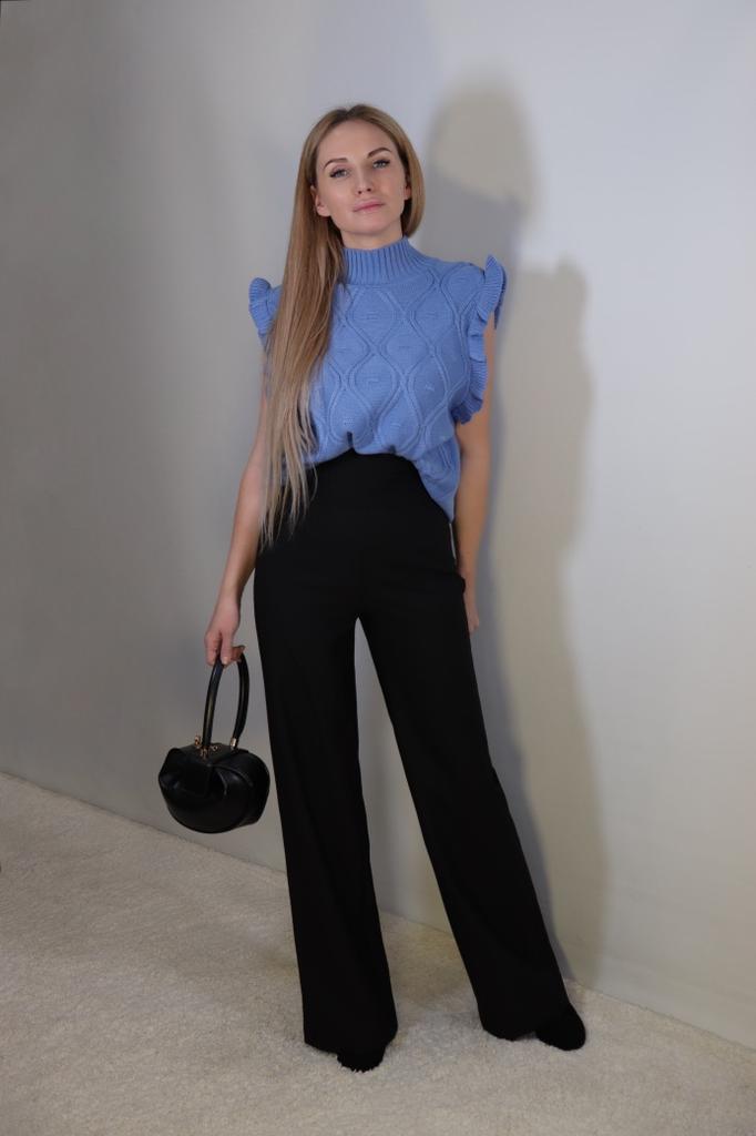 Товар шёл чуть больше месяца. Размер подошёл на 50 рус. Ог 102, от 98. Синтетическая мягкая нить акрил. Цвет не ярко голубой, как заявлено, а приглушённый синий. На рост 145.