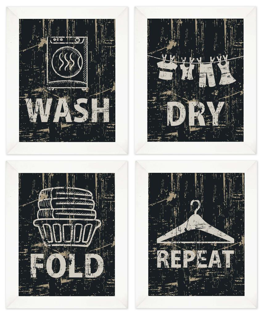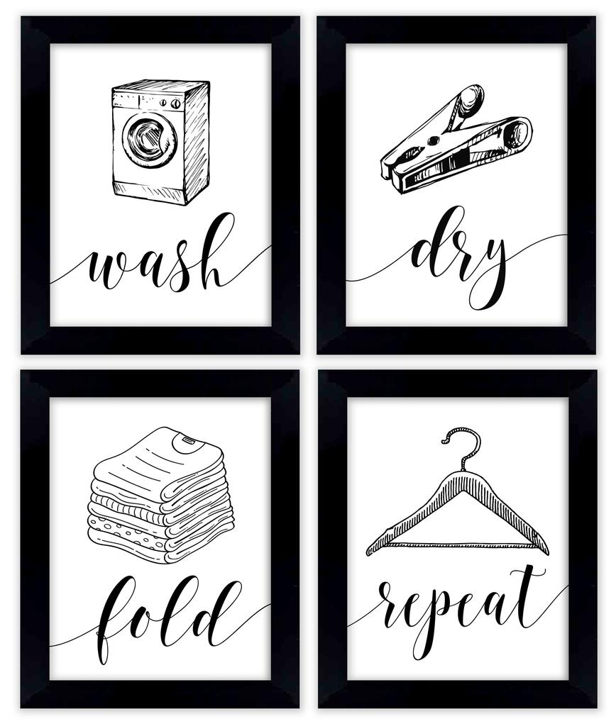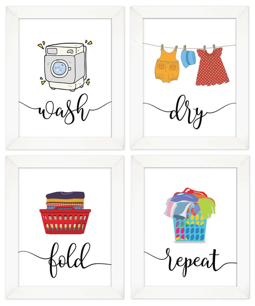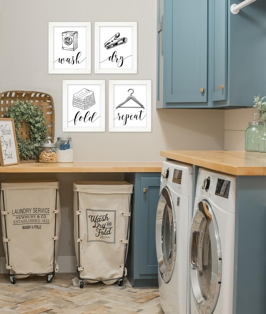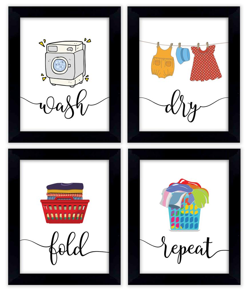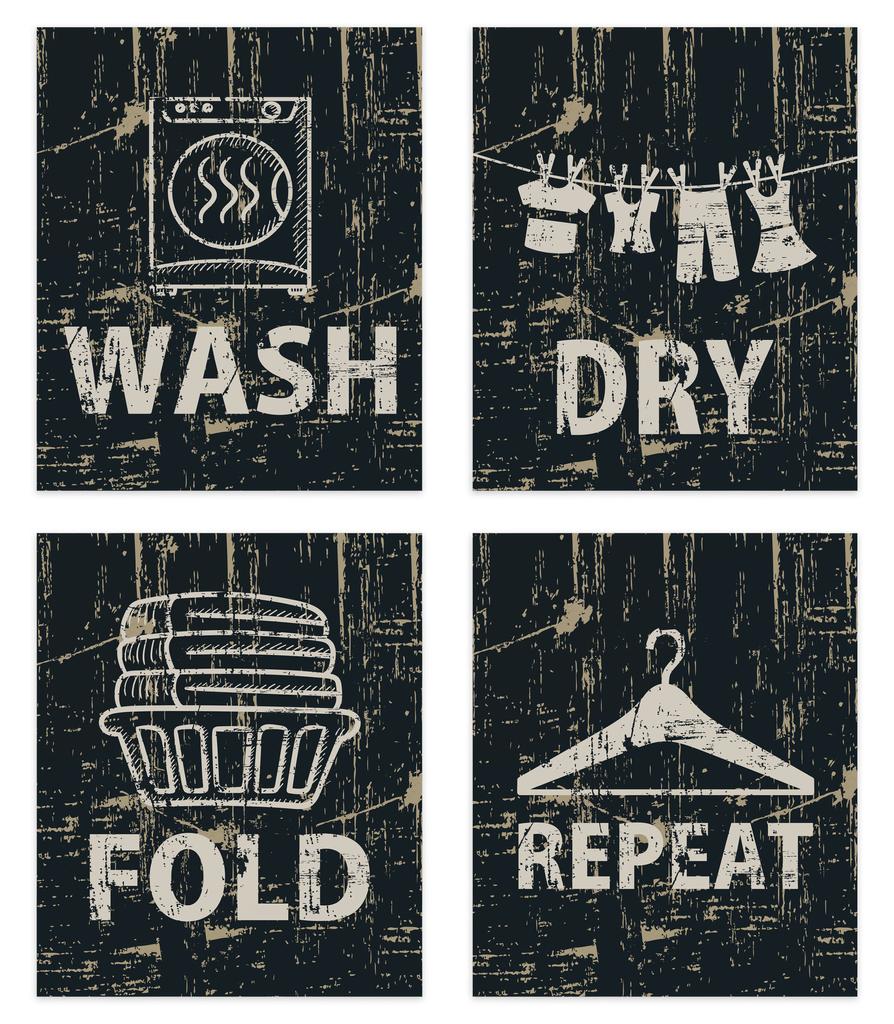 Inkdotpot 4 Piece Laundry Poster for Laundry Room Decor Wash Dry Fold Repeat , Laundry Room Posters Wall Art