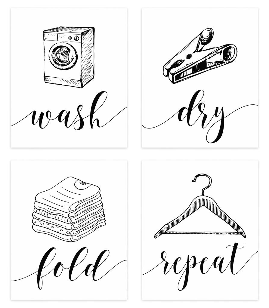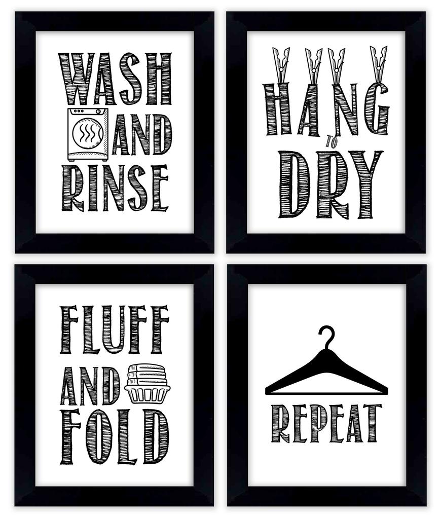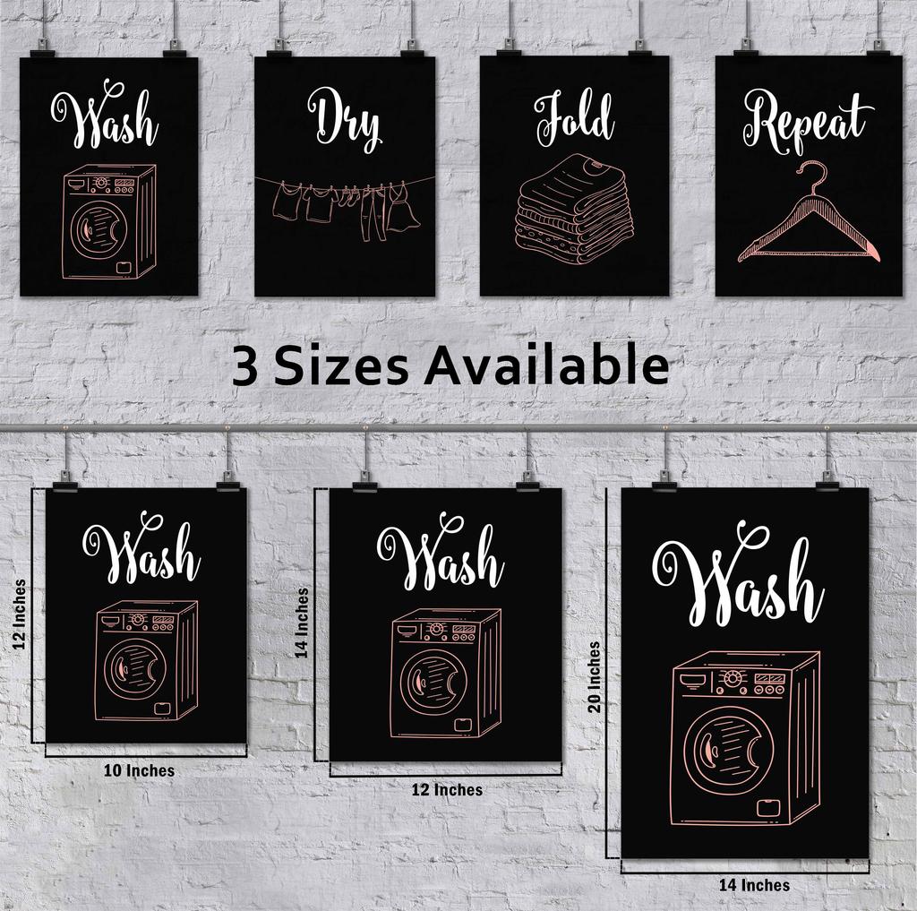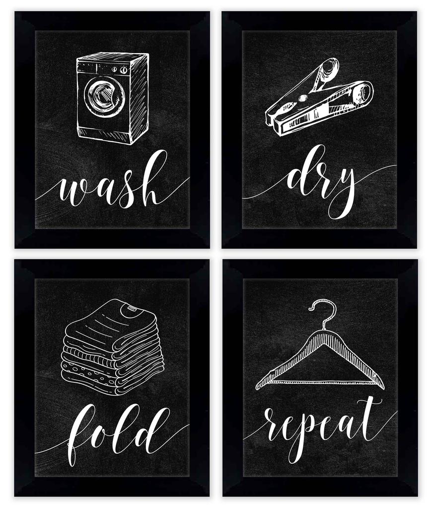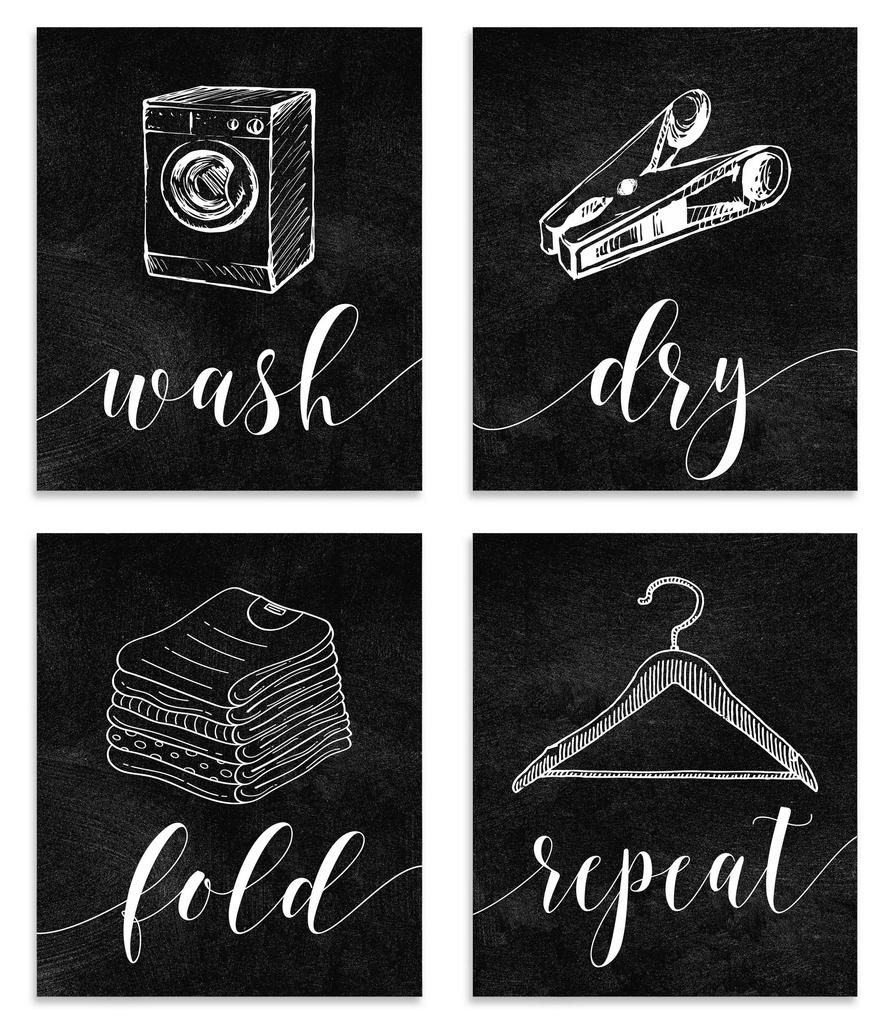 Inkdotpot 4 Piece Laundry Poster for Laundry Room Decor Wash Dry Fold Repeat , Laundry Room Posters Wall Art