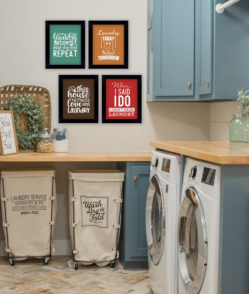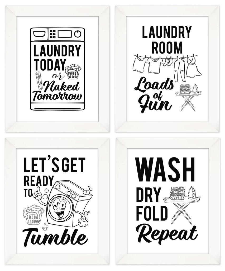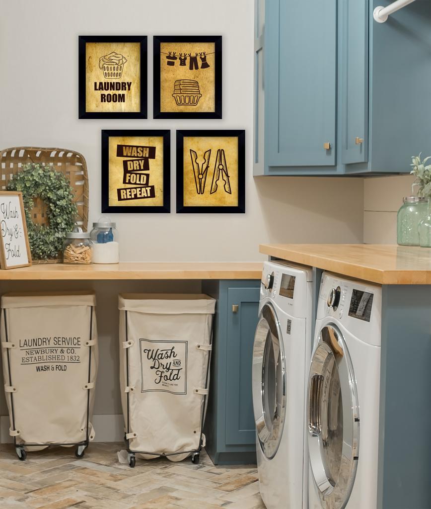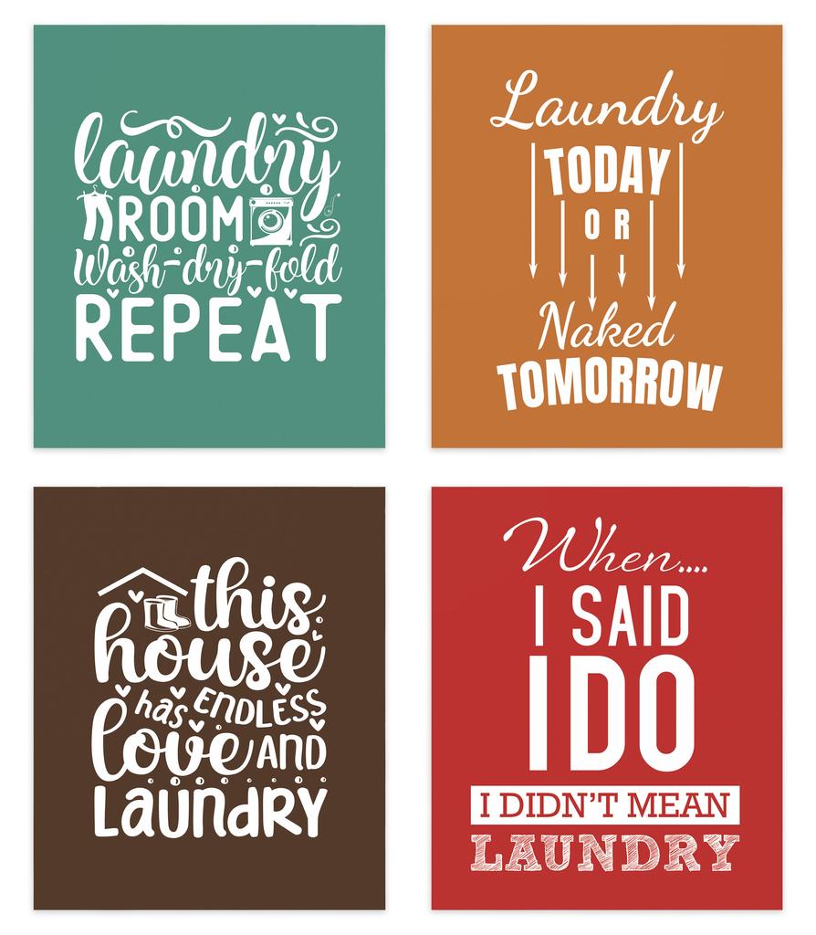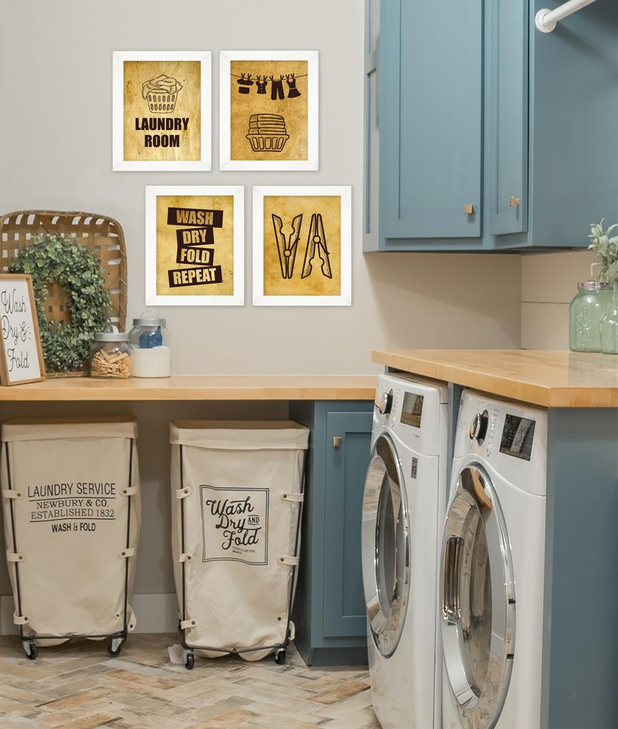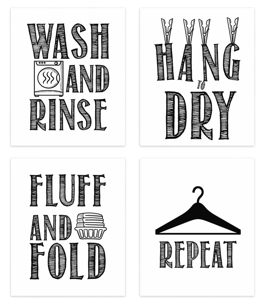 Inkdotpot 4 Piece Laundry Poster for Laundry Room Decor Wash Dry Fold Repeat , Laundry Room Posters Wall Art