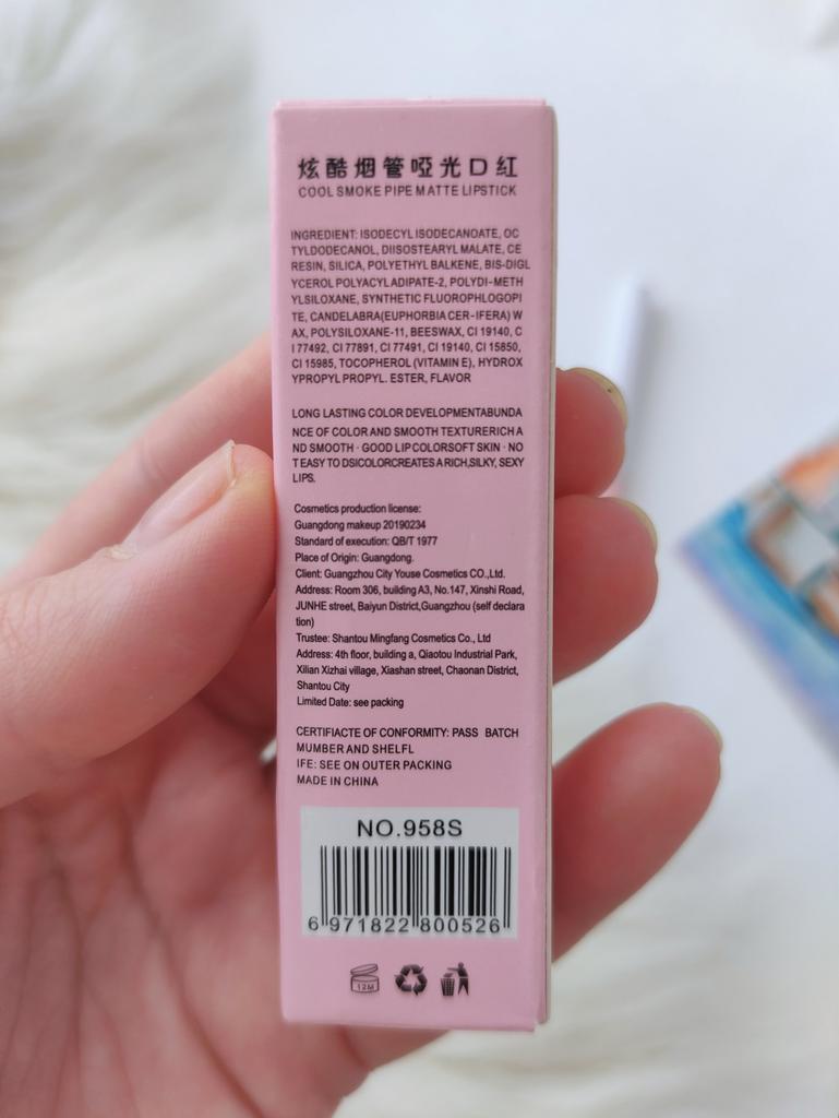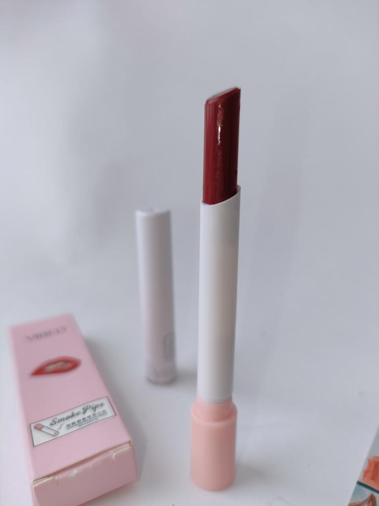Стильная упаковка с красивой помады в форме сигареты. Маленькая и тонкая, с сигарету, эта помада отлично подходит для того, чтобы носить с собой и поправлять макияж в течении дня. Я брала ее для театра, куда я хожу с маленьким клатчем и давно мечтаю подобрать под него маленькие форматы необходимых в дороге средств. Цвет выбрала яркий, насыщенный. Смотрится красиво. Губы не сушит, хорошо ложится и в целом такая уверенная база классической консистенции, как и любые другие помады. Упаковка удобная, помада просто выдвигается и убирается. Рекомендую. Доставка как обычно на joom по срокам долгая.