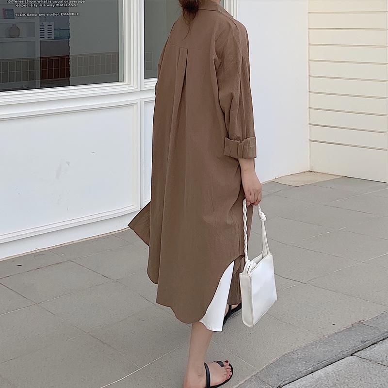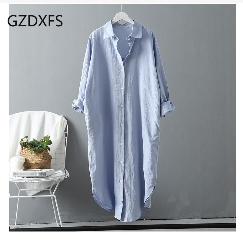 Рубашка средней длины, весенне-осенняя женская рубашка из хлопка и льна