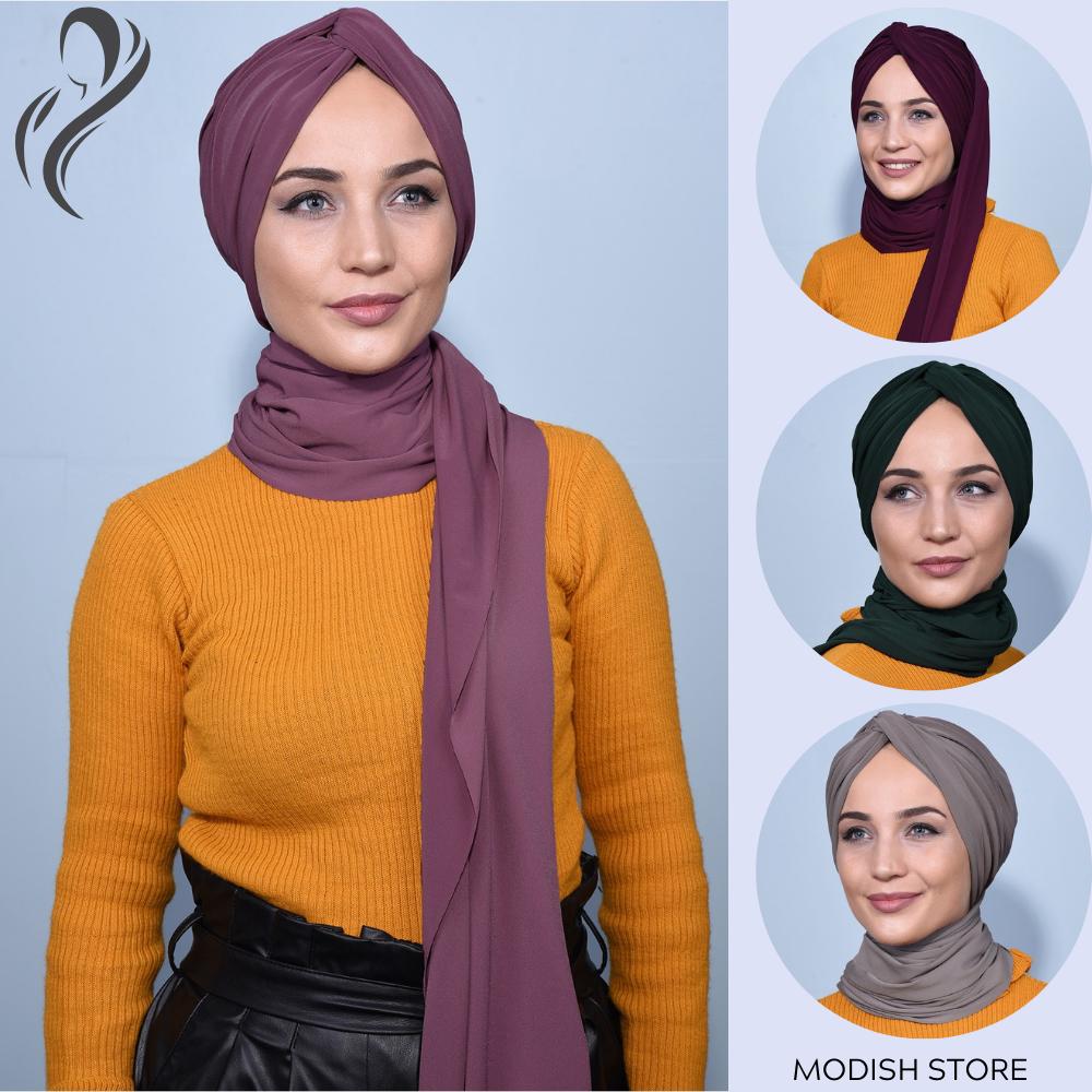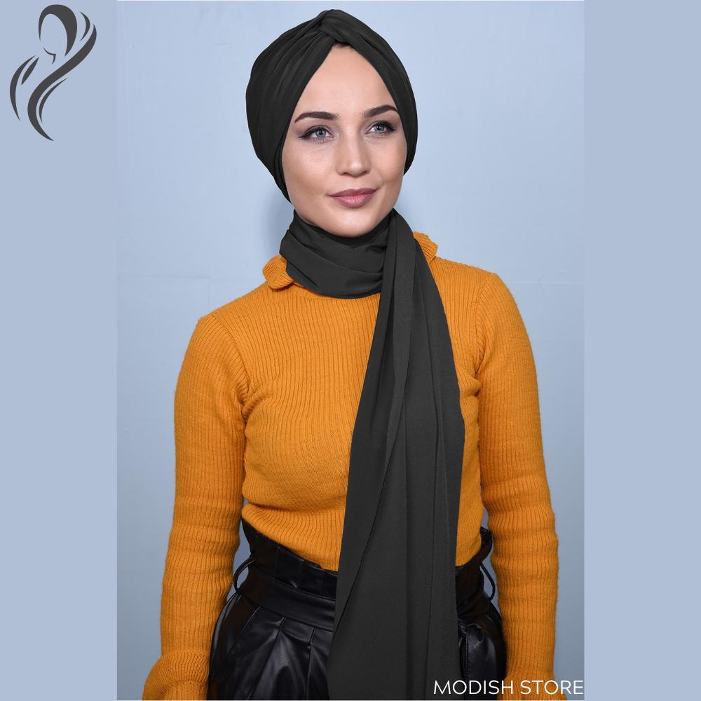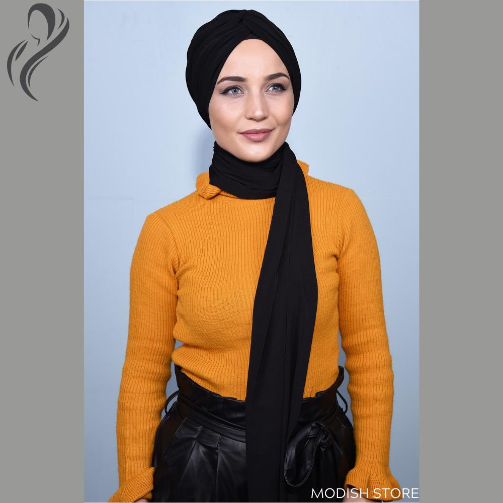 Шаль Вязаный Боннет Мгновенный Хиджаб Джерси Хиджаб Шеи Шарф Хиджаб Шапки для Женщин Черный Шарф для Женщин