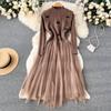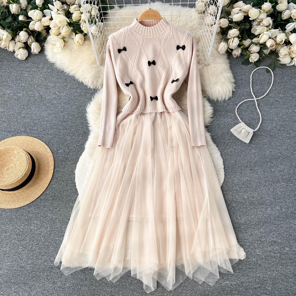 Женское трикотажное платье с нерегулярной сетчатой строчкой, короткий свитер с небольшим благовонием, жилет, осенне-зимний костюм из двух предметов