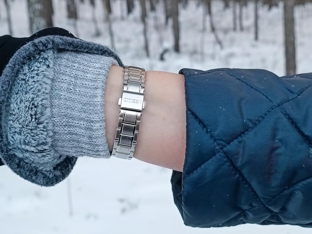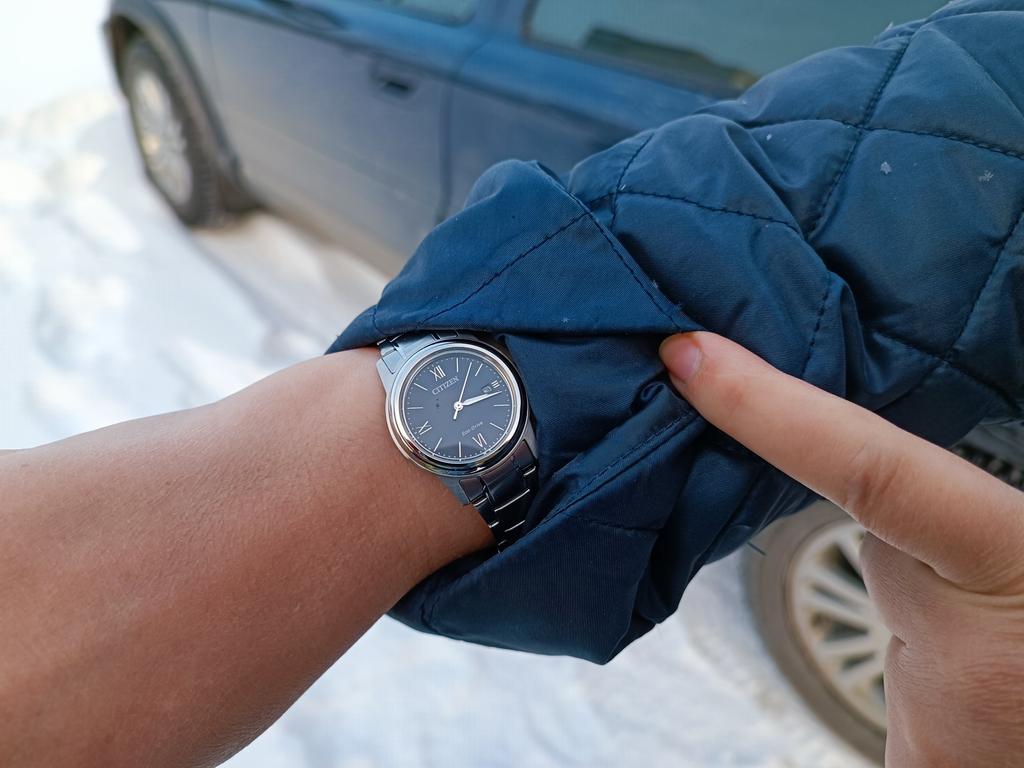 Добрый день! Часы купил супруге. Она довольна!!! Не только при вручении подарка, а именно при носке: лёгкие, на руке практически не ощущаются, за одежду не цепляются (с её слов). Браслет укоротил по одному звену (слева и справа). Она носит часы на правой руке, заводная головка в руку не впивается. Несмотря на крупные стрелки и метки: люминофора на часах нет. Покупал 02 ноября, в Екатеринбург пришли 01 декабря 2023 года: товар идет через следующие основные города: Сингапур, Гонконг, Стамбул, Москва, Екатеринбург, поэтому в настоящее время, срок доставки почти месяц, можно считать приемлемым. P. S. Сегодня 29.07.24. Можно рассказать и показать "время эксплуатации". Ещё раз повторимся, часы радуют, но есть небольшие уточнения, например читаемость даты: она средняя, само число даты маленькое, так ещё и утоплено (конечно же не как в других моделях Ситизен, но всё же); браслет на застежке имеет царапины, но это можно объяснить крепкостью письменного (рабочего) стола, но что тяжело объяснить, это поцарапанное стекло, причём супруга даже не поняла как это получилось, на корпусе (в верхней части) ни царапинки, а тут на тебе. Могу предположить, что само стекло сделано не стойким к царапинам... Носите аккуратно.
