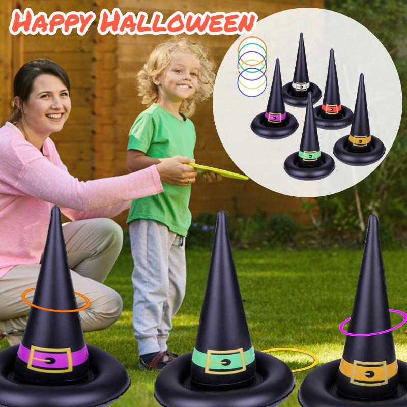 Надувная шляпа ведьмы, игра в метание колец, игра на Хэллоуин, вечеринка, игры, принадлежности для дома и улицы с надувным кольцом, праздничные игрушки