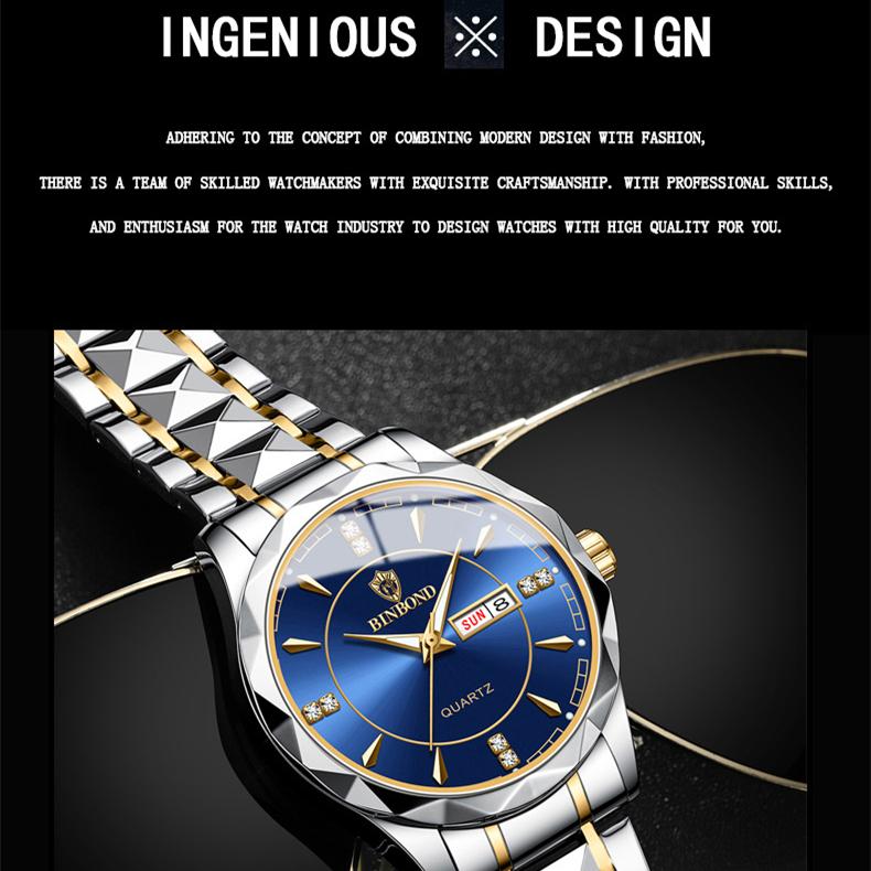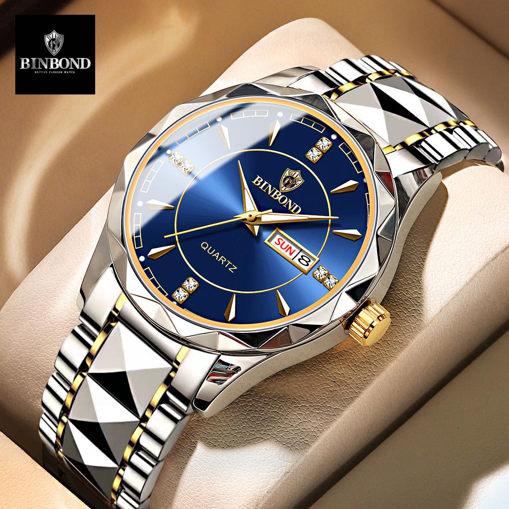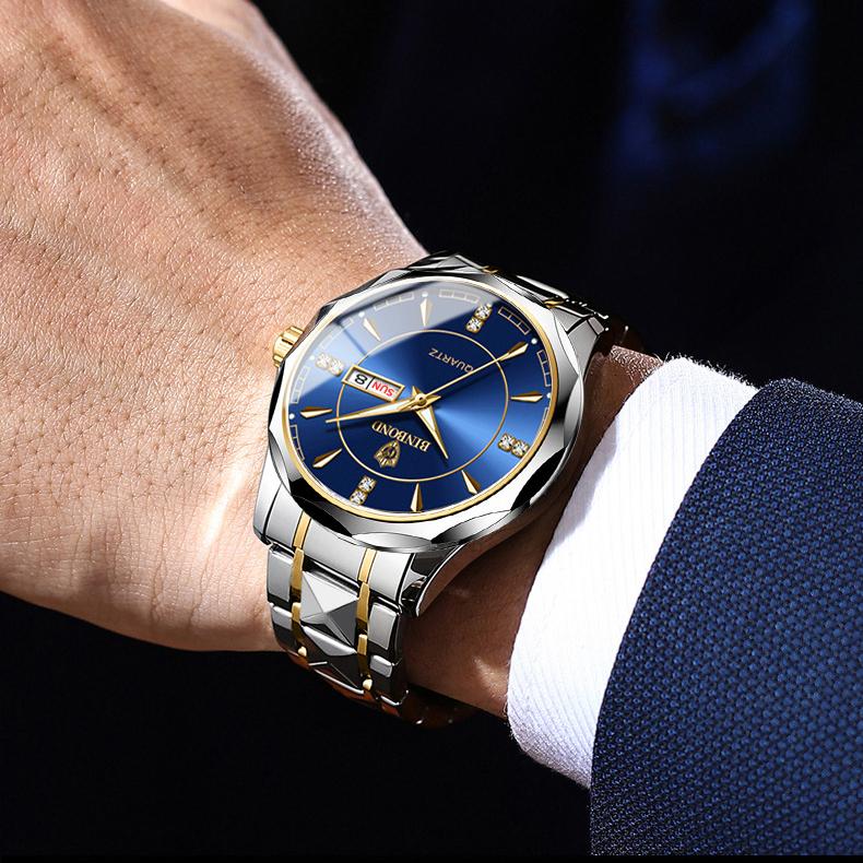 Мужские часы с подарочной коробкой, водонепроницаемые кварцевые часы с календарем