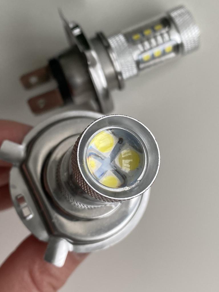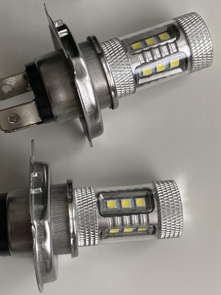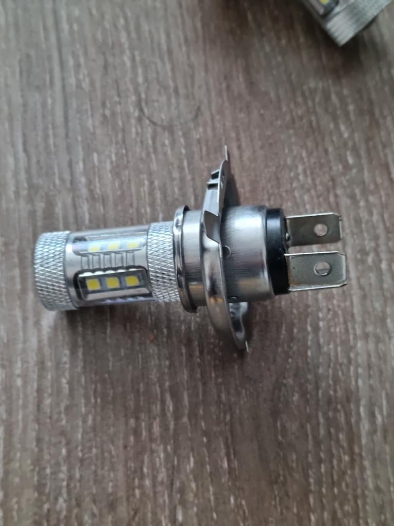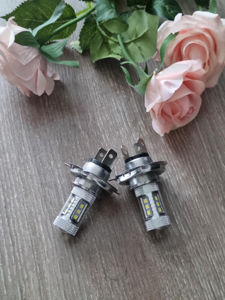 Набор автомобильных светодиодных ламп. Разъем Н4, мощность 80W, яркость 8000 люмен, температура свечения 8000К. Заказала комплект из 2-х ламп, так же можно заказать поштучно. Упакованы фары были в пакет, при транспортировке не повредились. Качество исполнения очень хорошее, толщина металла, качество линзы внушают доверие. Хорошие лампы для дополнительного освещения в автомобиле. Светят ярко и мощно. К покупке рекомендую.