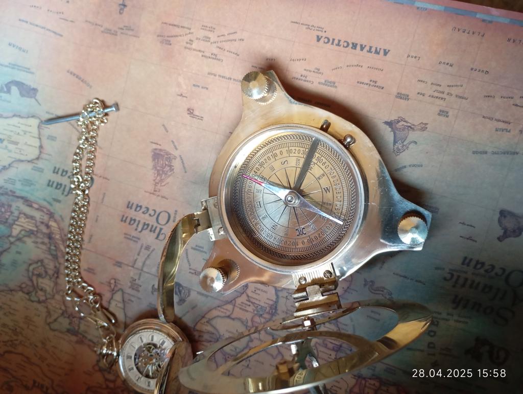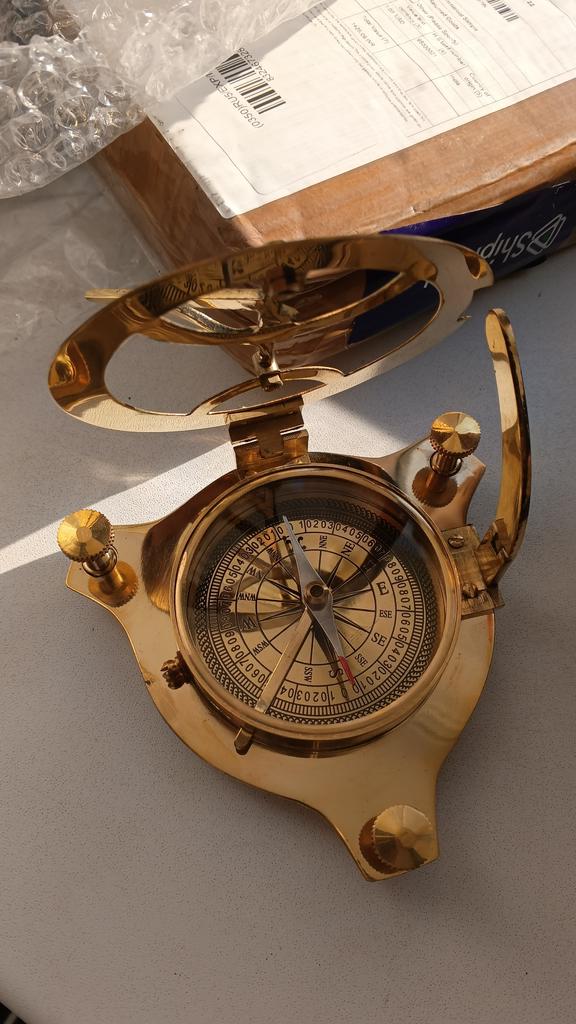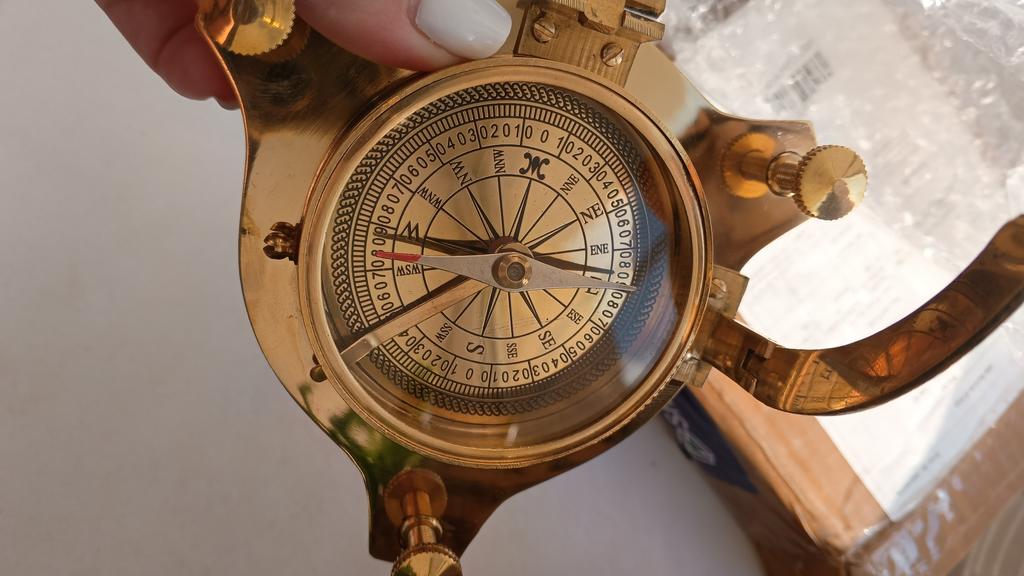 Когда не знаешь, что дарить, то такая вещь станет отличным вариантом. Доставка составила около двух недель. При транспортировке ничего не повредилось и компас пришел без брака. Отдельно хочется подчеркнуть как качественно все было упаковано - прочная коробка, которая перемотана хорошо скотчем и сам компас внутри проложен большим количеством пупырки. Компас латунный. Выглядит очень стильно, а работает - исправно. Направление показывает верно. Интересно откроется - как шкатулка. Есть различная шкала для других измерений. Стрелку можно зафиксировать с помощью специальной кнопки. Удобная опция. Отличный сувенир, который украсит любой дом или станет уникальным подарком. Покупкой осталась довольна. Красивая вещь и полезный сувенир. К приобретению рекомендую.