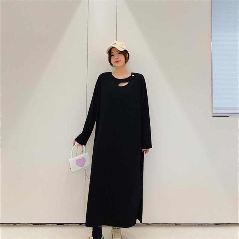 Dimanaf Женское 2022 новое осеннее платье в полоску больших размеров, элегантное длинное платье, свободное платье с круглым вырезом, черные платья макси