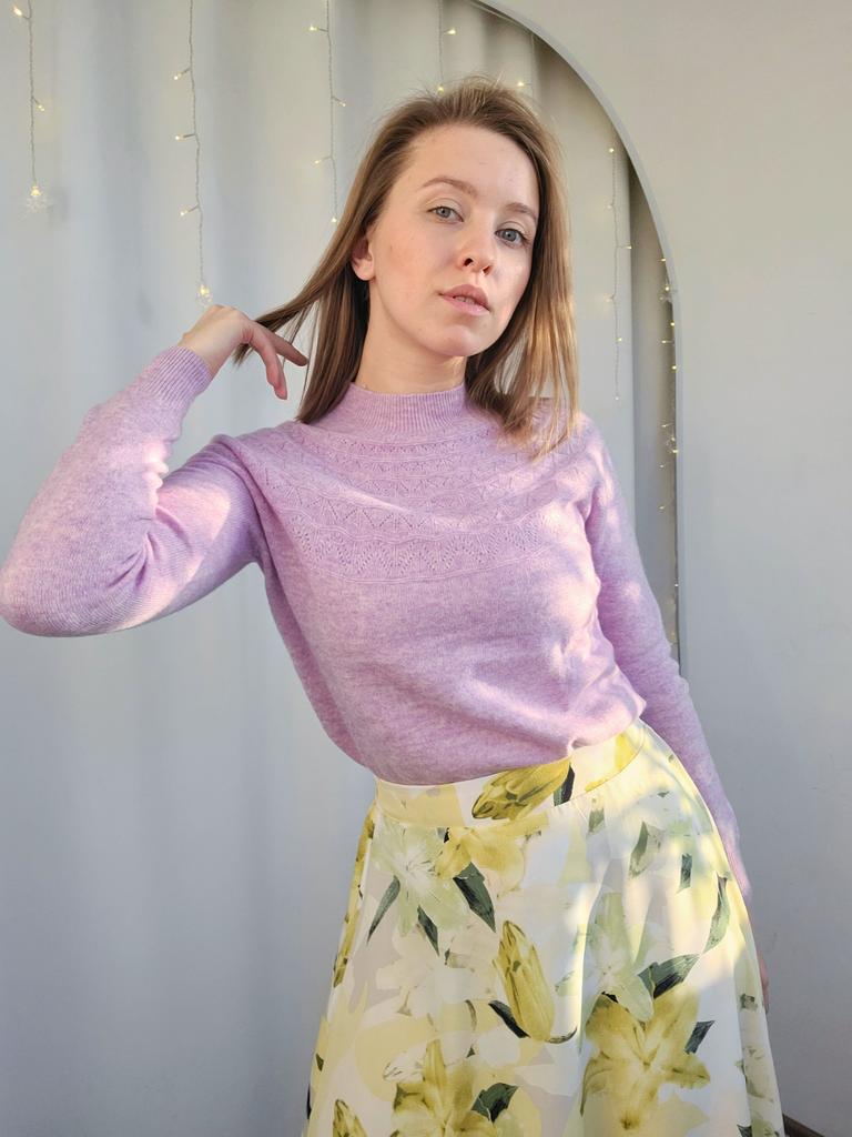 Очень классный джемперок! Мягенький, нежный, не массивный, елегантный... Боялась, чтобы не маломерил, как обычно бывает... Но все хорошо, размер подошел на 48-50, рост 170 идеально. Цвет соответствует. По поводу 100% шерсти сказать точно не могу - не эксперт, но очень похоже, запах натуральный, в руках не скрипит, значит не синтетика. За это переживала больше всего - чтобы за такие деньги не прислали сплошную химию