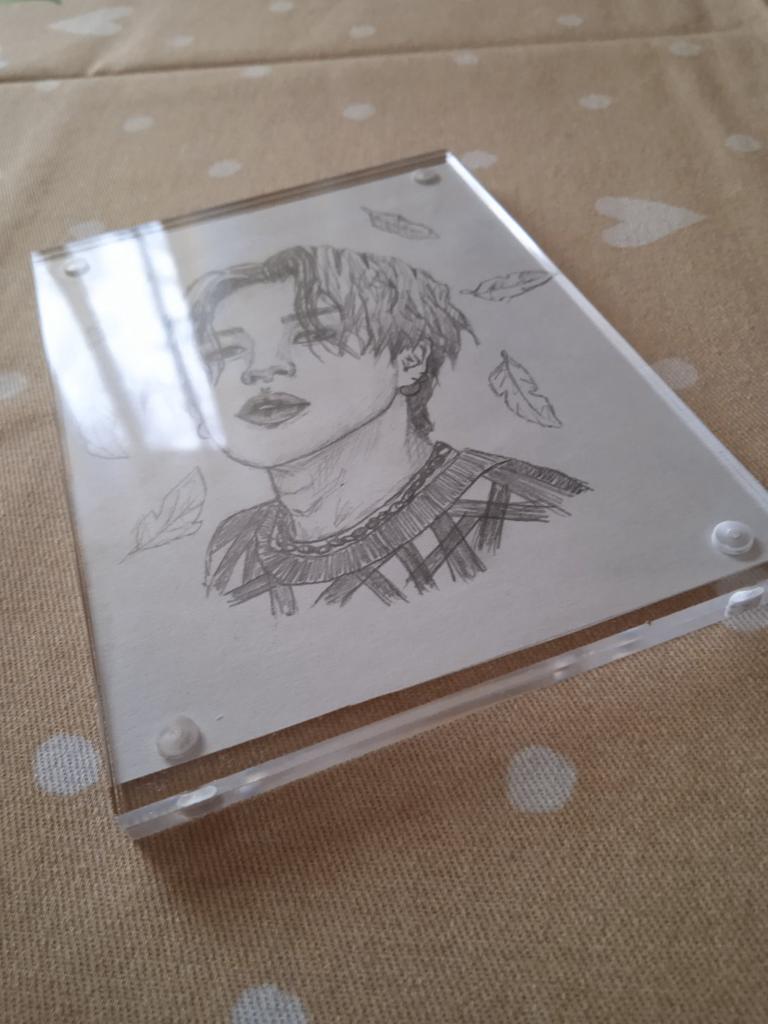 Хорошего качества акрил, без царапин, целое, хорошо упакована рамка, тонкая, стоит вертикально только на идеальной поверхности, надо покупать к нему подставку