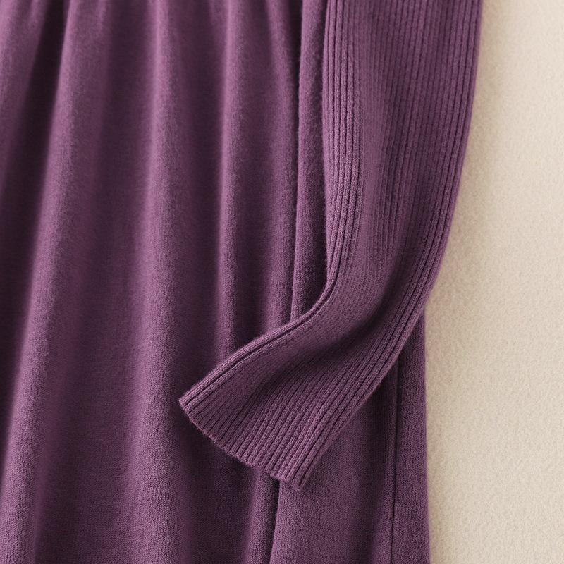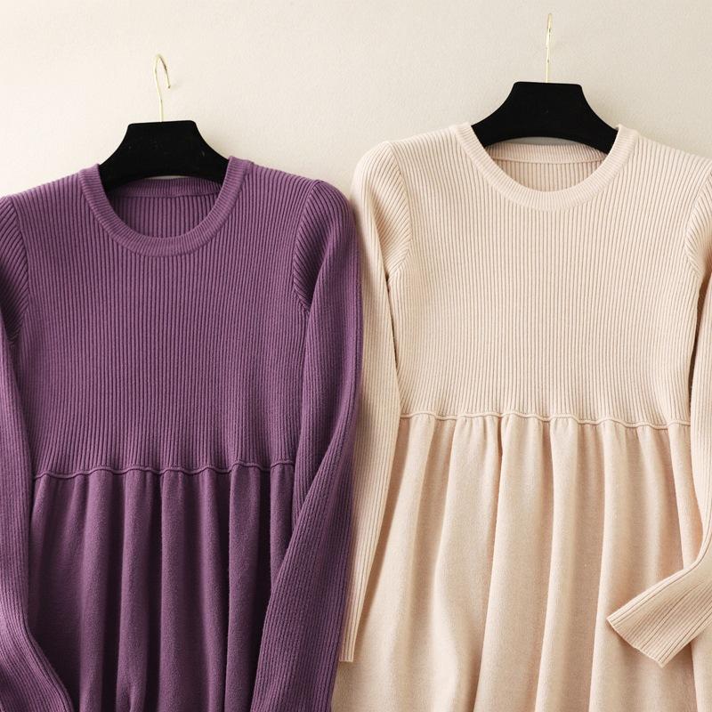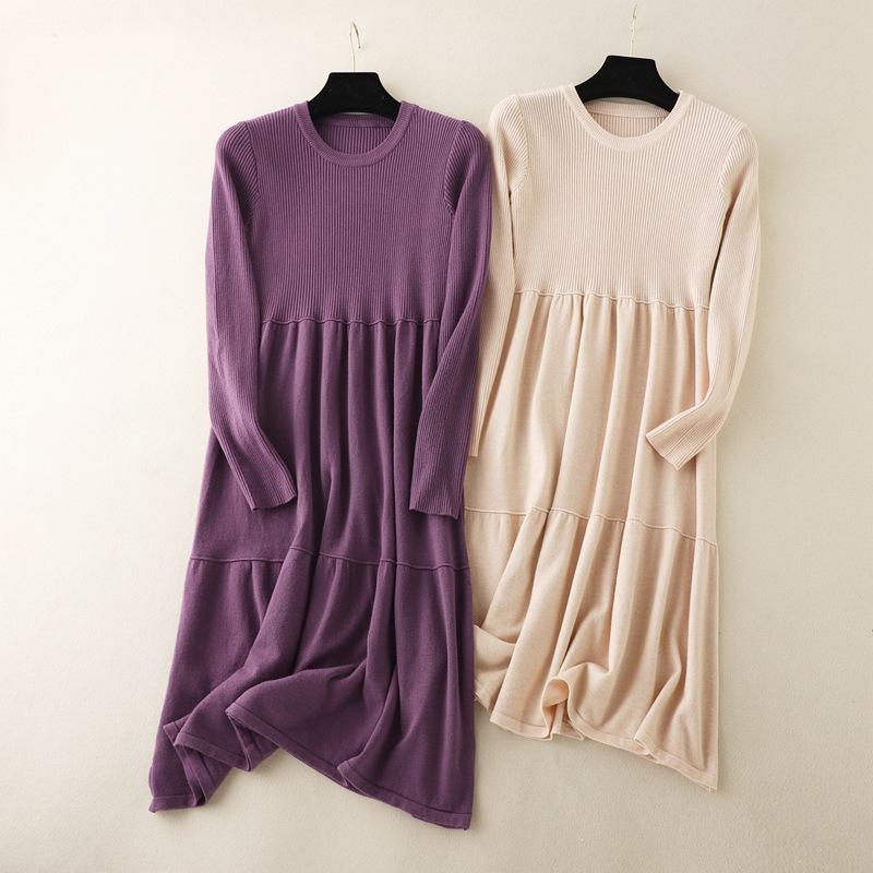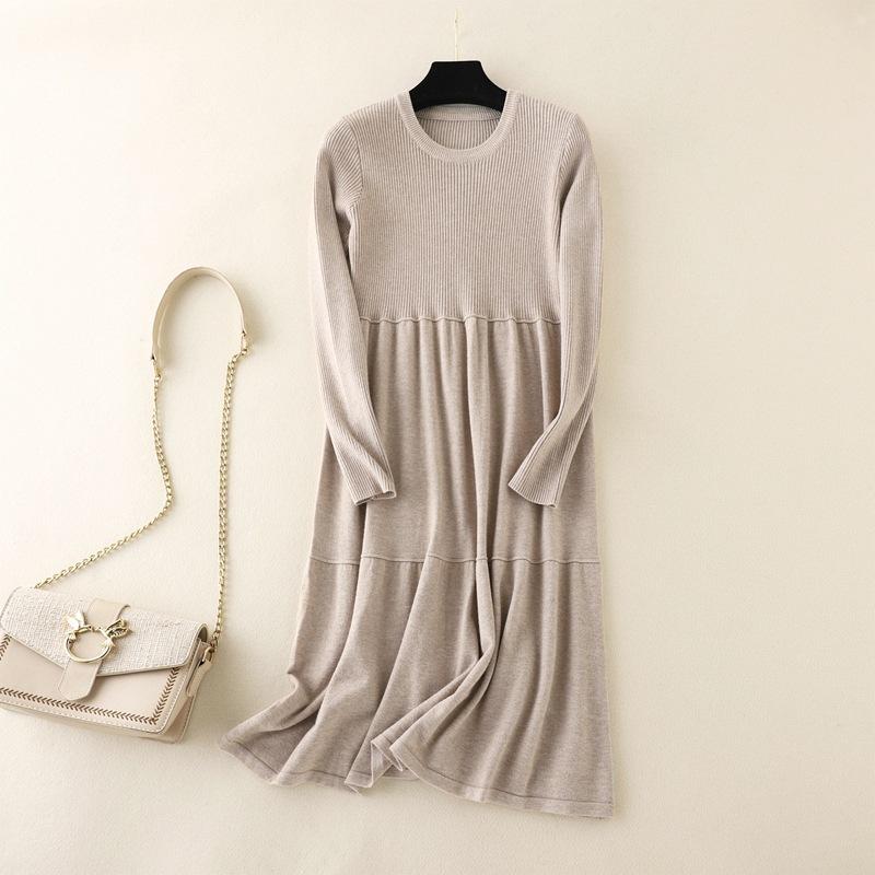 Женское осенне-зимнее платье-свитер с круглым вырезом и длинным рукавом, однотонное свободное вязаное платье