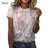 2022 Новая блузка, женская летняя мода, Funko Pop, женская корейская одежда с круглым вырезом, повседневные свободные футболки с цветочным 3D принтом