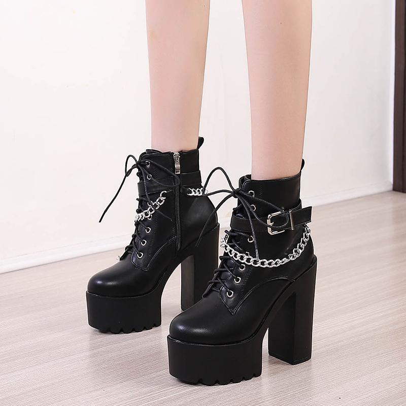 Готические ботильоны с пряжкой и ремешком, женские мотоциклетные ботинки на очень высоком каблуке на платформе и массивном каблуке с цепочкой — купить товар онлайн с бесплатной доставкой по всему миру!