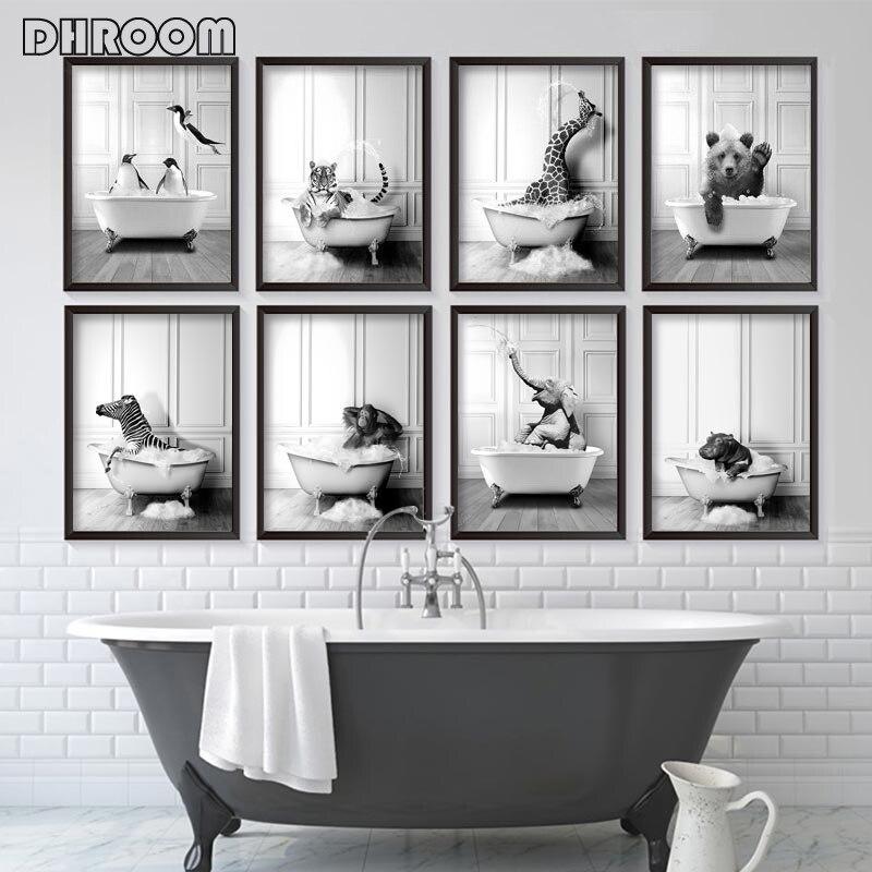 Скандинавский плакат для украшения ванной комнаты, слон, жираф, ванна, животное, черно-белый холст, картина, ретро настенные художественные принты, украшение для дома — купить товар онлайн с бесплатной доставкой до всему миру!
