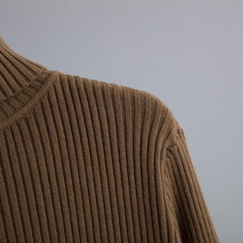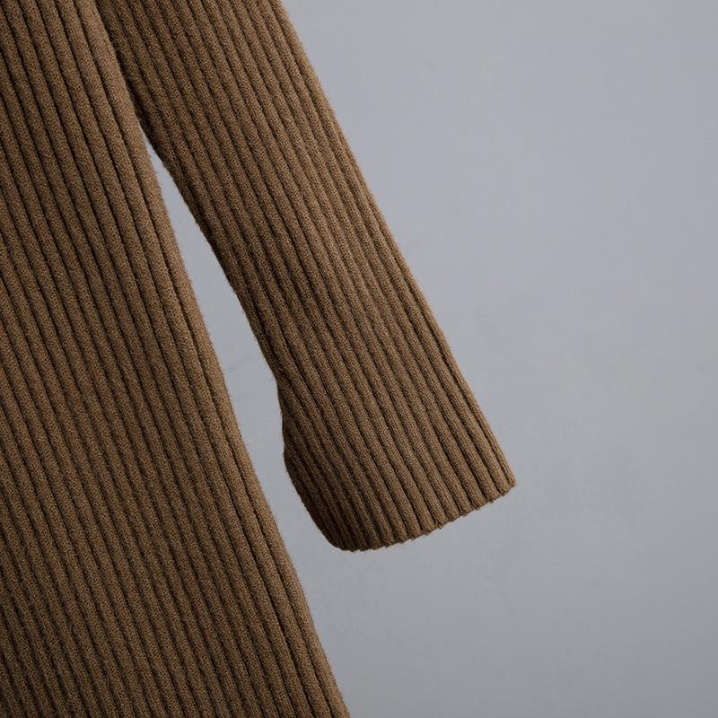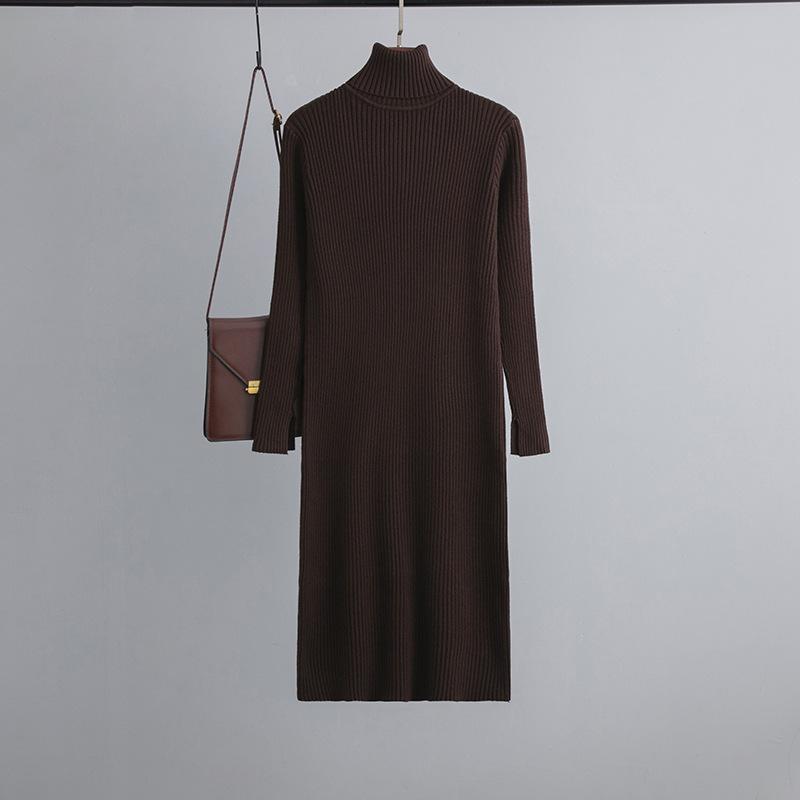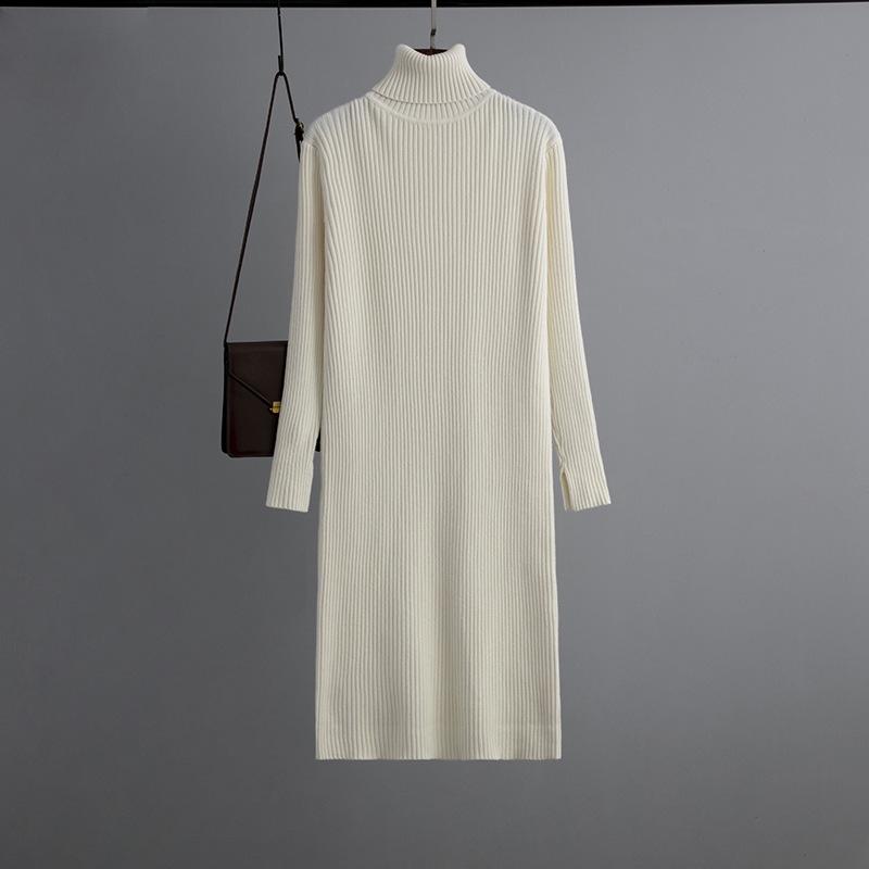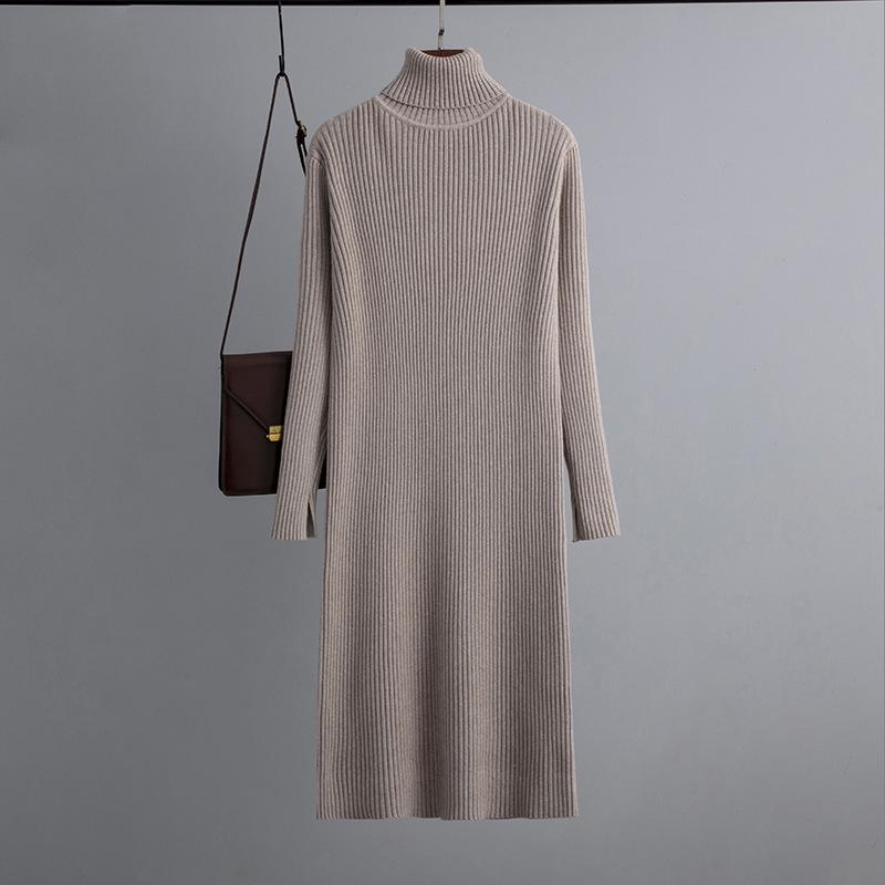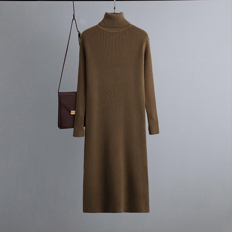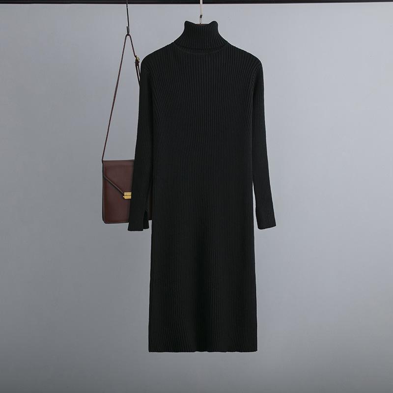 Женский осенне-зимний свитер с высоким воротом и длинным рукавом, однотонный вязаный свитер, длинные платья