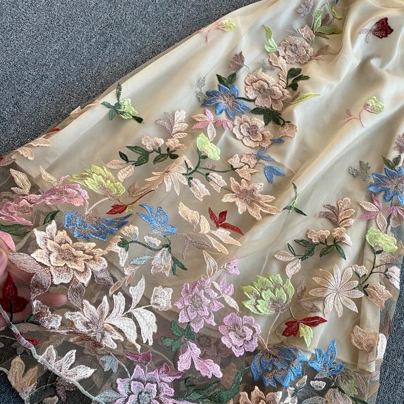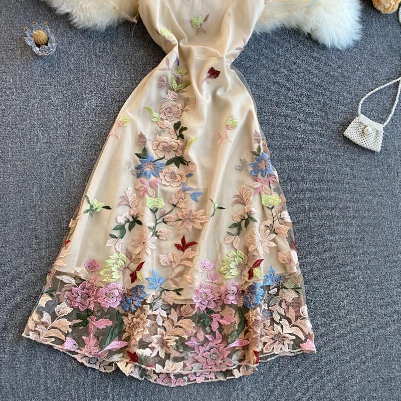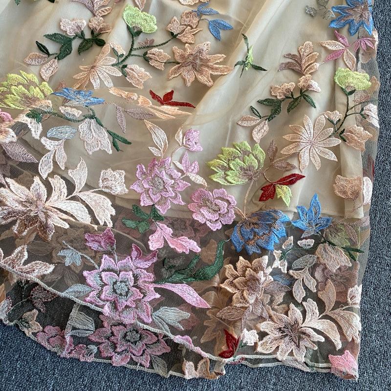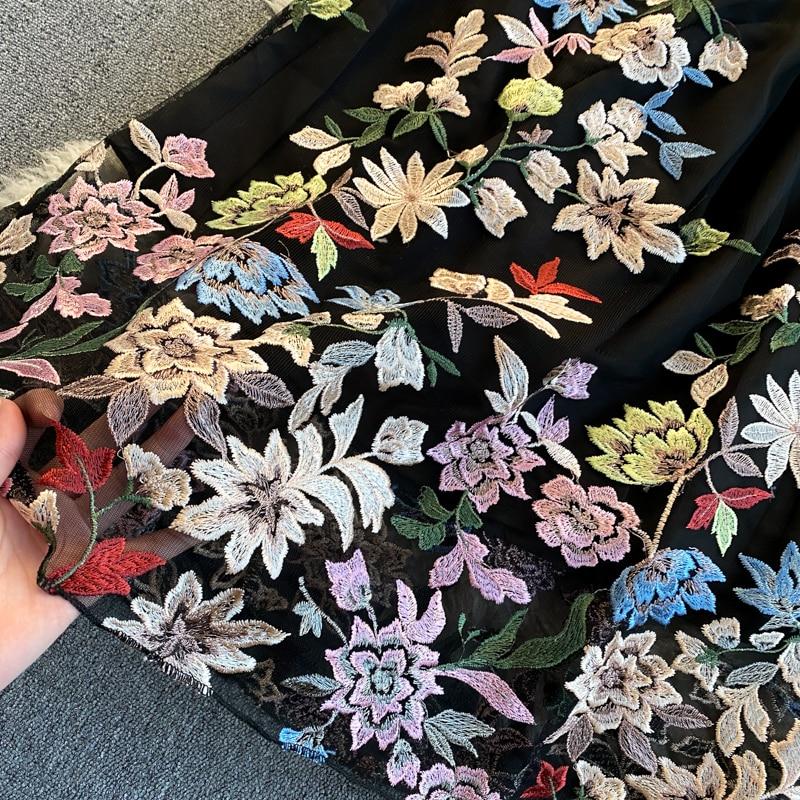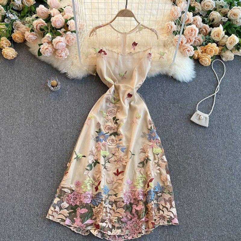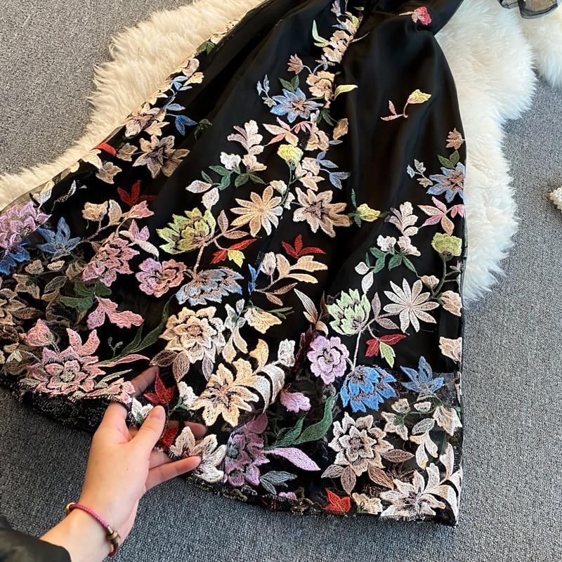 Новое сетчатое платье с вышивкой, светлое, для зрелого ветра, во французском стиле ретро, тонкое платье средней длины с принтом и подолом, облегающее талию