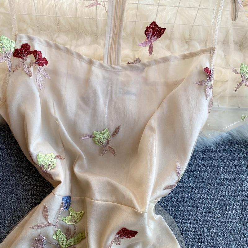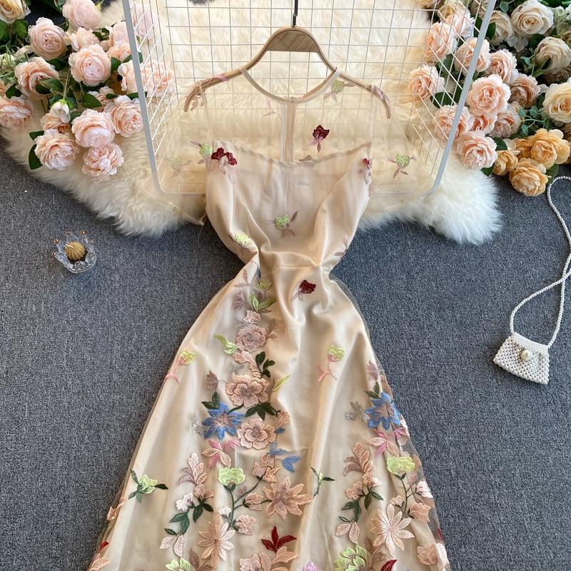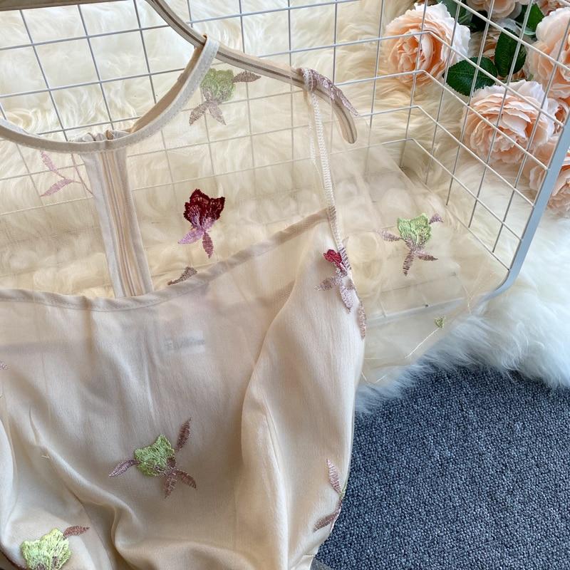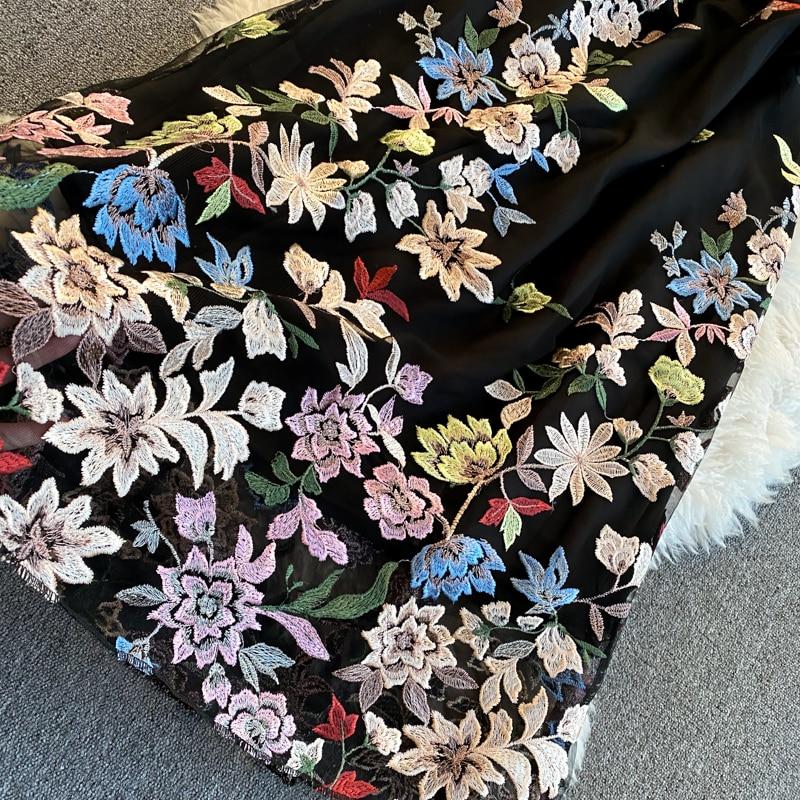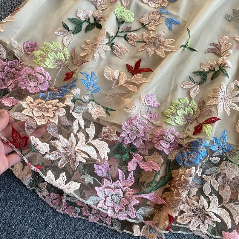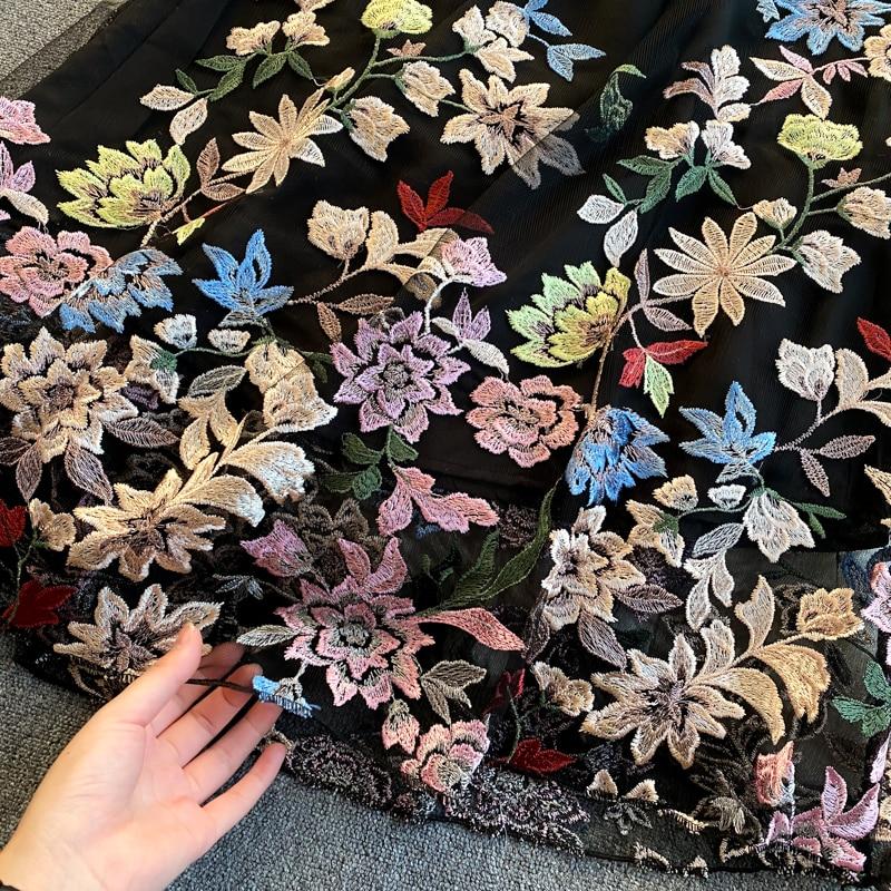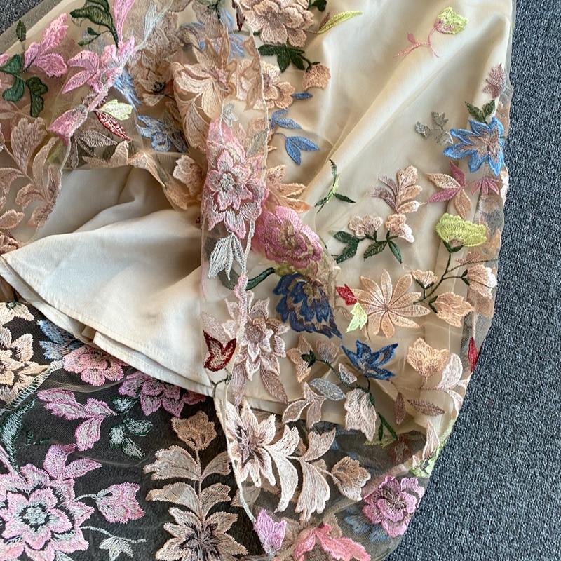 Новое сетчатое платье с вышивкой, светлое, для зрелого ветра, во французском стиле ретро, тонкое платье средней длины с принтом и подолом, облегающее талию