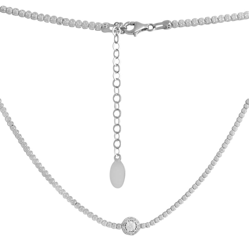 Золотое колье чокер с камнями бриллиантовой огранки с регулировкой размера 585 пробы белое золото родированное и белыми фианитами 3.26ct (12710902)