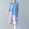 Платье 2022, новое летнее плиссированное платье средней длины с принтом, тонкий воротник-стойка, рукав три четверти