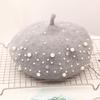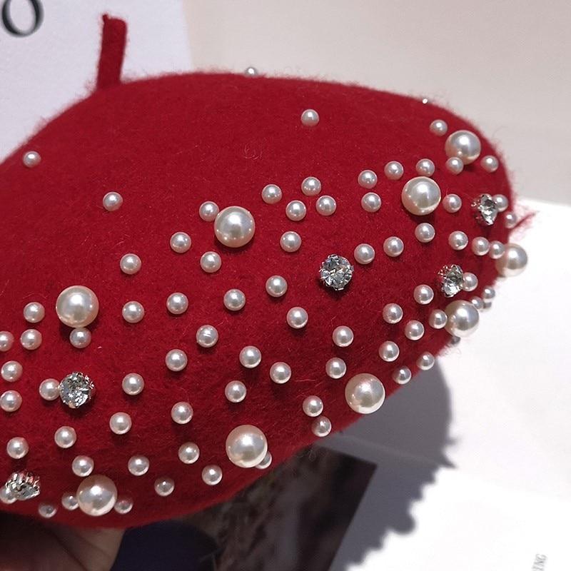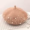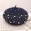 Женский берет с жемчугом, кашемировая зимняя ретро французская зимняя черная, красная французская кепка на плоской подошве, модная однотонная женская винтажная кепка