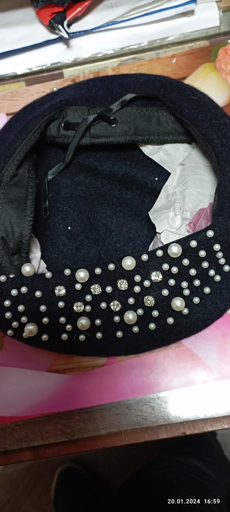 Берет получила. Конечно то что сотворили с ним это просто ужасно я не пойму зачем такую страшную тесемку пришили сверху берега это просто ужас. Сам берет неплохой. Цвет насыщеный. Бусинки все на месте. Типерь придется его переделывать. Очень неприятно. Ведь мы платим деньги. За ведомо думая что вещь окажется хорошей. За свои деньги я должна еще и переделывать. Так что если кто думает о покупке этого берета. Подумайте а надо ли его покупать