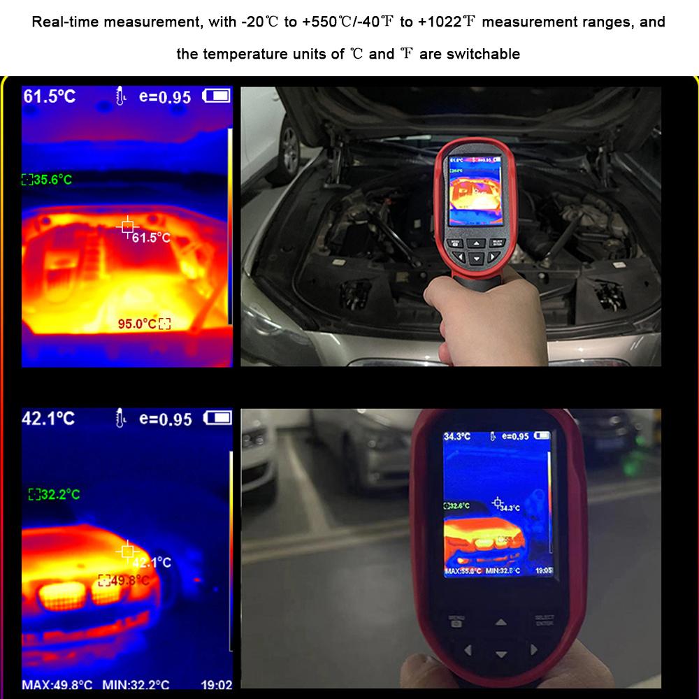 Измерение в режиме реального времени с диапазонами измерений от -20 по Цельсию до +550 по Цельсию /-40 по Фаренгейту до +1022 по Фаренгейту, а также температурные единицы Цельсия и Фаренгейта переключаются.