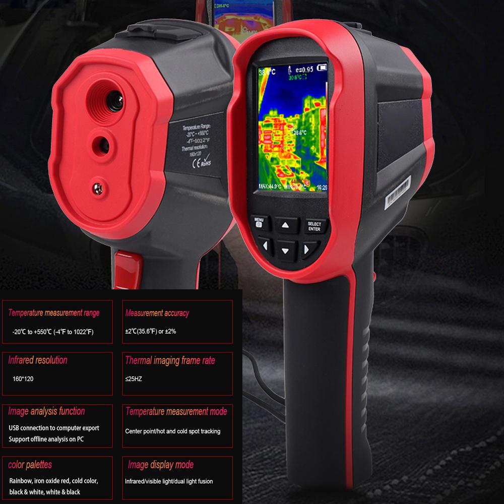 Компактный размер и легкий вес. 2,8-дюймовый большой TFT полный угол обзора экрана с разрешением видимого света 640 * 480 и инфракрасным разрешением 160 * 120. Дизайн пяти режимов визуализации, вы можете настроить на радугу, красный оксид железа, холодный цвет, черно-белый, белый и черный в соответствии с вашими потребностями или предпочтениями. Три режима отображения изображений, инфракрасный режим, режим видимого света, инфракрасный режим слияния видимого света(25% , 50% , 75% , 100.0процент ). Широко используется в инспекции зданий, инспекции технического обслуживания транспортных средств, обнаружении температуры автомобильных деталей, обнаружении теплого пола, электрическом осмотре, обнаружении неисправностей двигателя, мониторинге температуры промышленных деталей и т. Д.