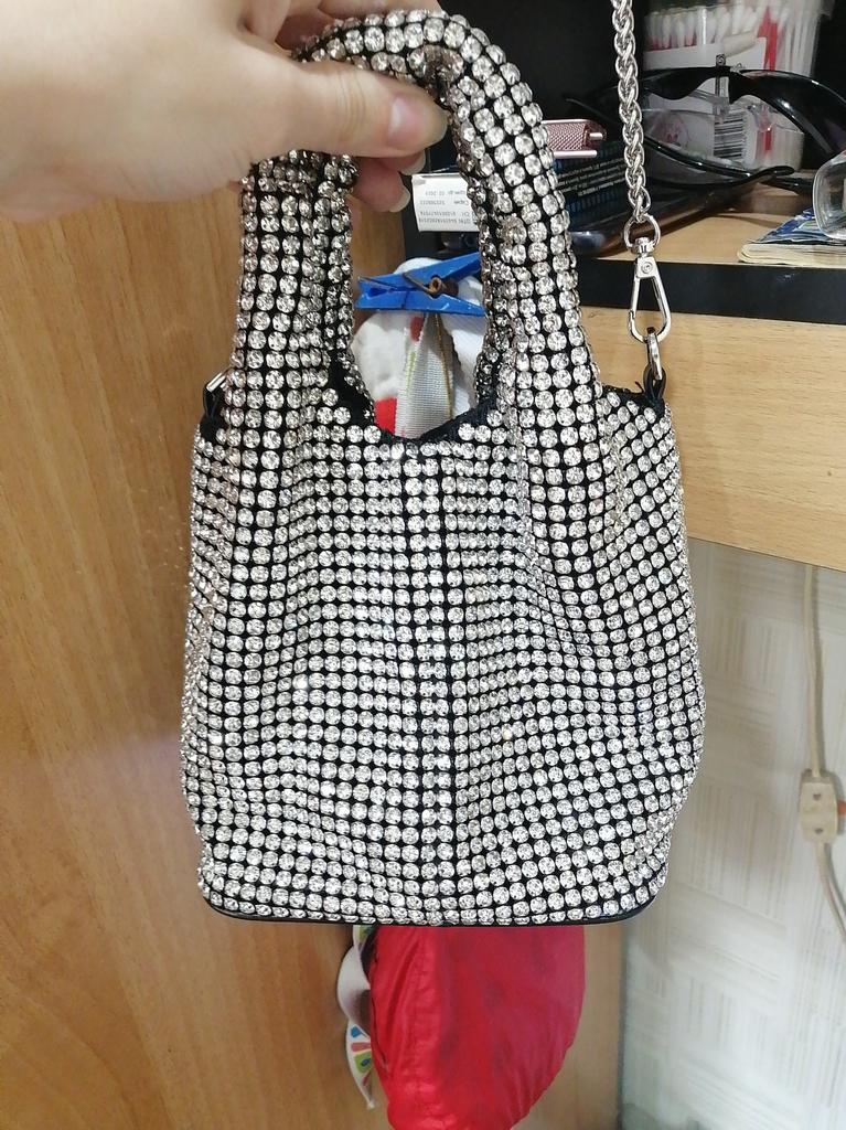 Шик, блеск, красота 🌟🌟🌟 Нарядная сумка- тоут Больше обзоров, промокоды, подарки и закрытые распродажи в моем телеграм канале. Жми лупу 🧐🔎, вводи @Наталья_Великая . Меня можно найти также через браузер. Если не можешь найти, пиши ВК, ссылка в шапке профиля. Лежала эта сумка у меня в корзине долго. Во-первых, были сомнения : куда ее носить? Во-вторых, были опасения по поводу крепления камней: не будут ли цепляться за одежду? Акция часа, и обнаруженный в корзине жирный купон сделали свое дело, и я ее купила). И не пожалела ни разу. Камни закреплены металлическими лапками, но так тщательно и аккуратно, что не портят одежду. Спасибо стилю фьюжн, я могу носить эту сумку не только в театр- ресторан, но и в повседневной жизни. И уже носила) с моими кроссовками, на которых тоже есть бриллиантовые вкрапления, получился прекрасный дуэт. На выбор несколько расцветок. У меня шампанское 🥂 Одно отделение Магнитный замок Дно жесткое, с ножками В комплекте длинный, тяжёлый ремешок из металла В комплекте мешочек с запасными камнями. Размер донышка: 14,5*14,5 Высота 14 Длина ремня 110 см Длина ручек 20 см. Сумка небольшая, но вместительная. Помещаются: портмоне, телефон, ключи и мелочь типа: помада, зеркало. Покупкой довольна. Очень )