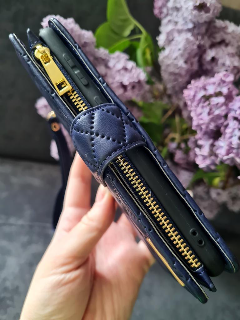 Всем привет, друзья! 😻🖐 Отличный чехол-книжка и кошелёк 2 в 1 для телефона Samsung A31 💙 Покупка повторная, зимой покупала такой, только в розовом цвете, для сестры, сейчас мама попросила синий. Чехол изготовлен из качественной PU-кожи, поверхность матовая, не скользит в руках, приятный на ощупь засчёт мягких ромбиков. Имеет магнитный 🧲 флип, а также 8 отделений для карт, визиток, одно - для фотографии, и большое отделение для купюр, застёгивается на металлическую молнию. Передняя крышка и отдел для купюр застёгиваются между собой на металлическую магнитную кнопку. Встроенный силиконовый бампер плотно и надёжно фиксирует телефон. Все элементы и отверстия совпадают. В комплекте - шнур с металлическим карабином для ношения телефона на запястье. Очень удобно, что с этим чехлом можно не носить кошелёк! У продавца товар представлены чехлы на различные модели телефонов, на выбор 6 расцветок, к покупке безусловно рекомендую 👍👍👍💯💯💯💯💯 Доставка ✈ до Минска заняла всего 18 дней. Спасибо продавцу и джуму 😘 Благодарю вас за ваши лайки,❤ комментарии 💬 и подписку ✅
