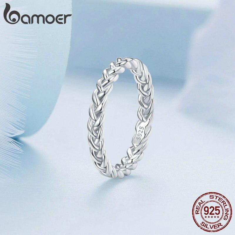 BAMOER, стерлинговое серебро 925 пробы, плетеная текстура, витая полоса вечности, плетеные кольца на палец, ювелирные украшения, подарок для женщин — купить товар онлайн с бесплатной доставкой по всему миру!