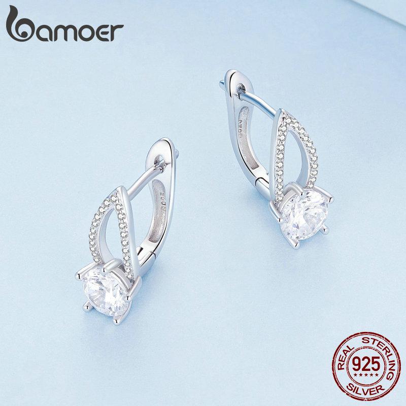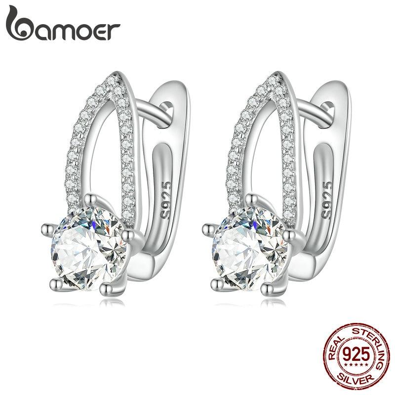 BAMOER стерлингового серебра 925 пробы круглые циркониевые пряжки для ушей блестящие серьги-кольца для женщин подарок на день рождения изысканные ювелирные изделия