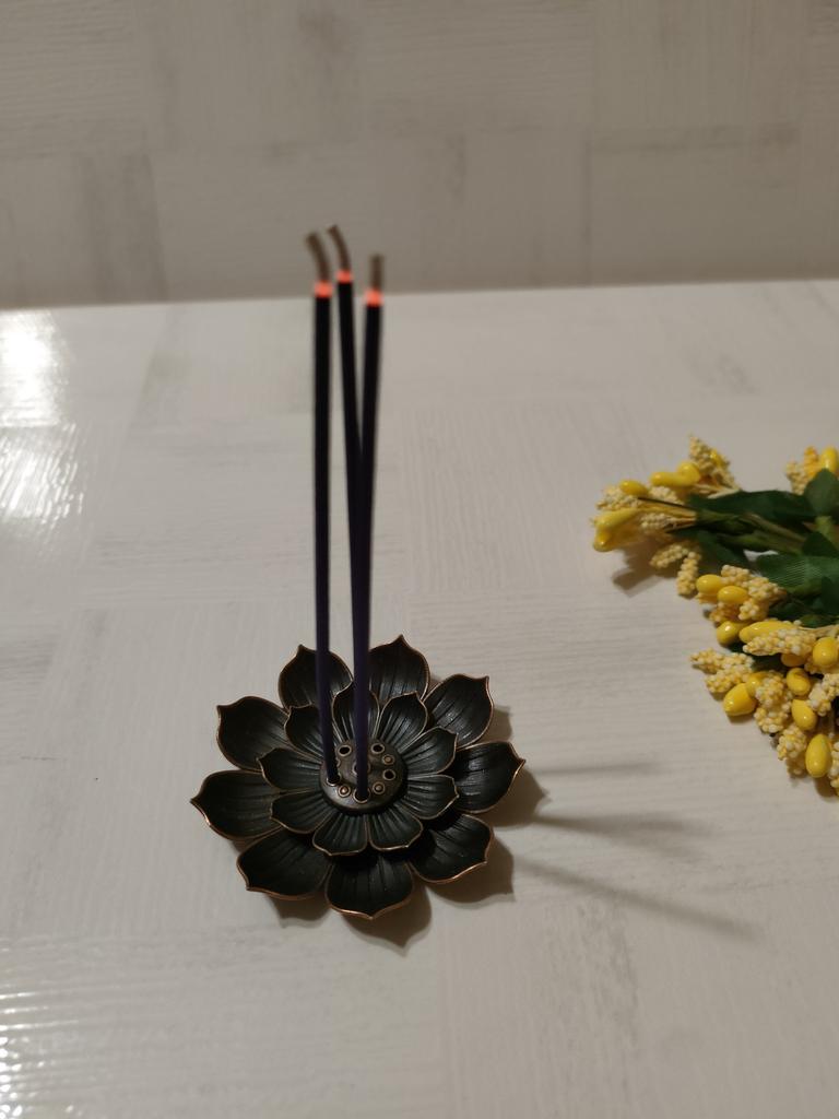 Подставка для благовоний Я сейчас нашла новое увлечение. Погружение в мир медитации и спокойствия. Сейчас очень трудно управлять своими эмоциями, но как мы знаем нельзя давать плохим эмоциям поглощать свое внутреннее состояние. Вот и меня посветили в мир благовония. Это приятный запах который положительно влияет на состояние души и тела. Так вот, сегодня я расскажу вам про подставку для благовоний в виде прекрасного цветка лотоса, которая используется при медитации или просто для создания в доме приятной атмосферы. Во-первых, сам по себе цветок лотоса это символ мудрости, добра и чистоты. Сам вид подставки очень гармоничный. Он отлично подойдёт под любой дизайн. Можно использовать от одной до шести палочек благовония. Мне хватает всего одной, чтобы чувствовать нежный аромат, создать атмосферу в доме и расслабиться. Сама по себе подставка маленькая, но пепел мимо ни падает, все остаётся внутри. Есть разные вырезы под любой размер благовония. Подставка стоит ровно. Не наклоняется и не падает при полной загрузке. Для меня это прекрасный элемент декора в моём доме. Однозначно советую к приобретению. Пришла в обычном пакете. Все целое. Товар такой как на фото у продавца. Подставка металлическая. Доставка до Николаева полтора месяца. Плюсы: Дизайн Качество Цена Собирает в себя пепел. Минусы: Их нет Удачных вам покупок с joom