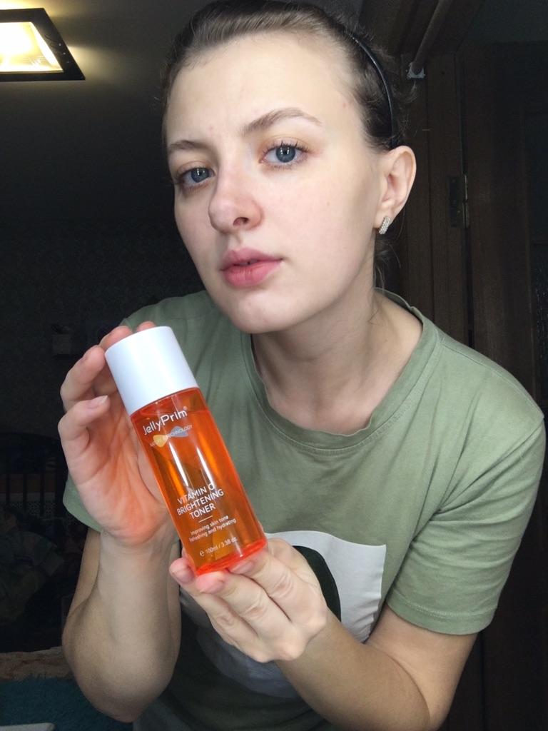 ОСВЕТЛЯЮЩИЙ ТОНЕР ДЛЯ ЛИЦА с витамином C от JellyPrim🧡 Тонер используют после умывания утром и вечером на слегка влажную кожу. После она прекрасно подготовлена к нанесению других уходовых средств, типа лосьона, сыворотки и крема👌 Нормализует гидролипидный баланс, восполняет недостаток влаги, устраняет сухость и чувство стянутости после умывания. При регулярном использовании улучшается цвет лица, кожа становится более упругой, эластичной и подтянутой👍 Пришёл в фирменной коробочке, сам находится в прозрачном пластиковом флаконе оранжевого цвета, объём содержимого 100 мл Сам тонер имеет ненавязчивый запах и бесцветную водянистую консистенцию. Срок годности с большим запасом, аллергии и раздражения не вызвал, хотя кожа чувствительная👌 🛬Доставка в Беларусь, Витебск🇧🇾 23 дня с полным отслеживанием👌 💕Очень хороший продукт, кто до сих пор не пользуется тонером очень рекомендую попробовать👍🥰 Ваша кожа скажет вам спасибо⭐️💯 🤗Оставайтесь красивыми🦋🦋🦋