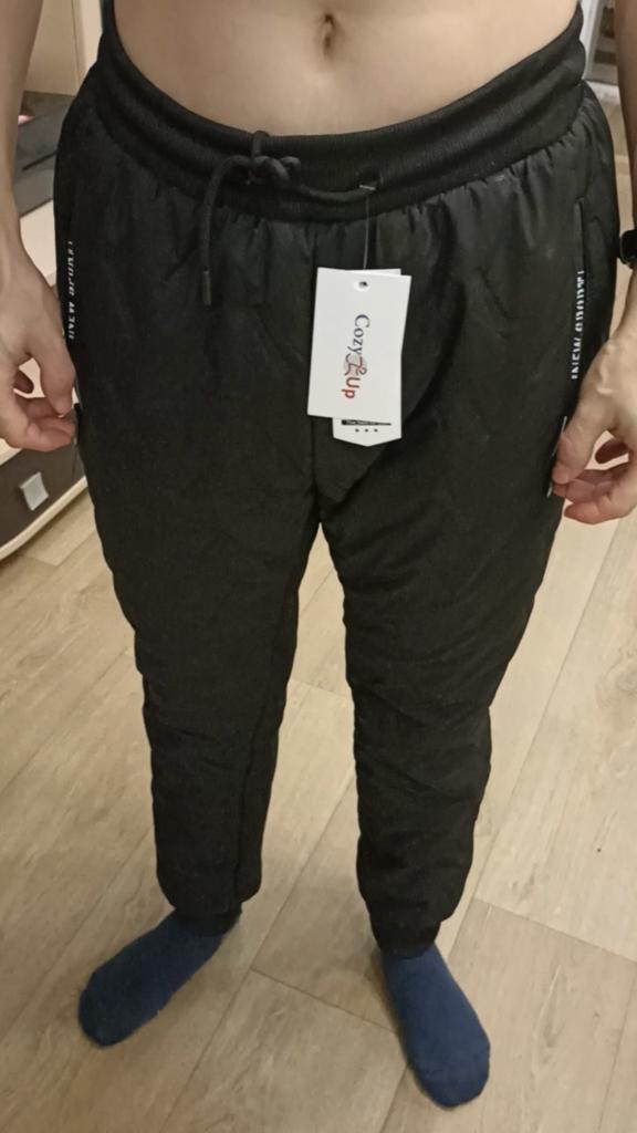 Непромокаемые и не продуваемые мужские зимние штаны от Cozy Up. Подойдут для сильных холодов до -25. Штаны непромокаемые и не продуваемые!👍 Материал как плащевка, шуршит при ходьбе. Внутри мех,к телу приятные и согревают. Внизу на штанах есть манжеты и не будет попадать снег в ботинки.Качество отличное. На выбор есть два цвета: черный и серый. Размерный ряд: от L до 7XL. Заказан размер 5XL. Точные замеры: Талия - 85 -100 см Бедра - 124 см Длина изделия - 107 см Параметры модели: Талия - 106 см Бедра - 120 см Рост -178 см По длине оказались короткие.Материал не тянется, только в талии резинка тянется. И ещё низкая посадка. Штаны отличные,но только выбирайте нужный размер и учитывайте длину,а также по своей фигуре подойдёт ли низкая посадка. Рекомендую с учётом ваших параметров при выборе. Очень рекомендую магазин с разнообразием товаров.👍