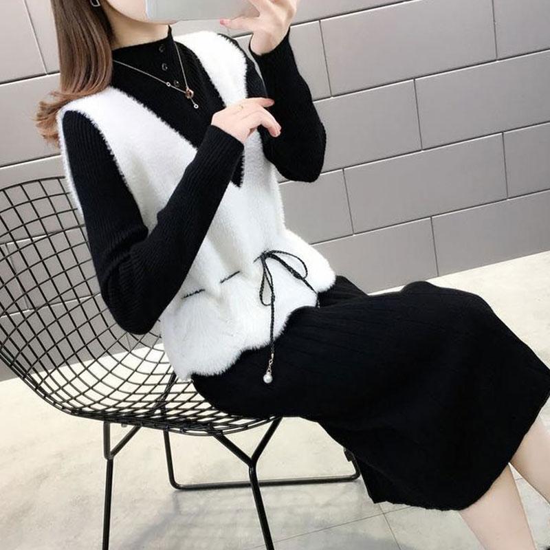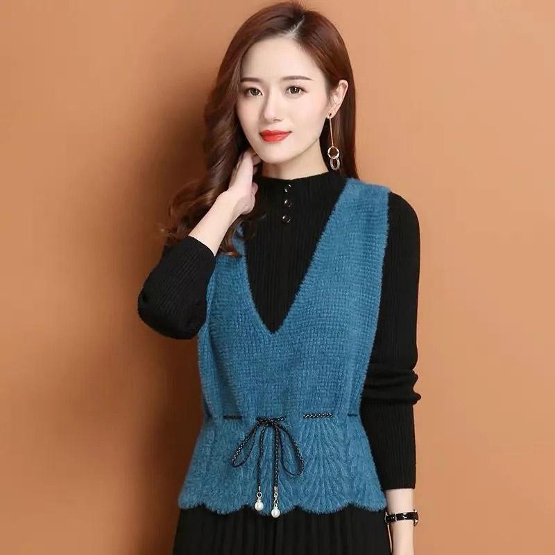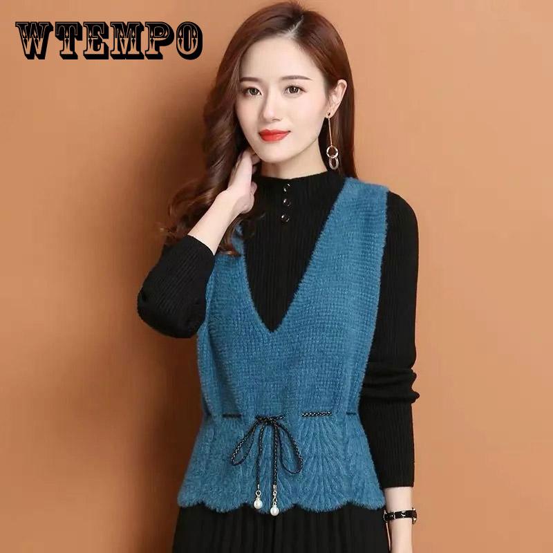 Элегантный жилет из искусственного норкового бархата с v-образным вырезом, весенне-осенний женский вязаный жилет, свитер, верхняя одежда