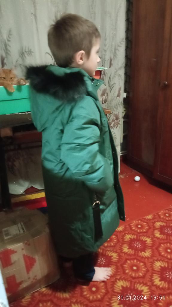 Курточка хорошая, без запаха, края немного не ровные и торчат нитки кое где, но это не критично.. Покупкой довольна. Брала на вырост. Пришла посылка за 2 недели