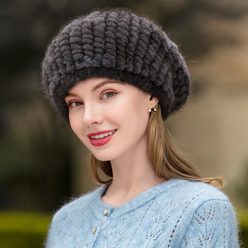 Меховая шапка женская модная теплая стильный берет шапка из норки вязаная норковая меховая шапка новый зимний берет — купить товар онлайн с бесплатной доставкой до всему миру!