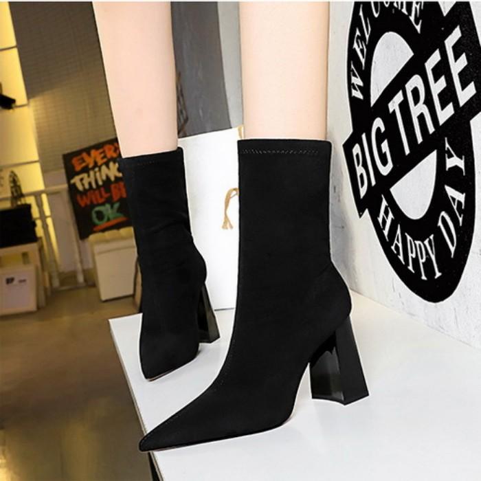 Сексуальные замшевые короткие сапоги на очень высоком толстом каблуке в европейском и американском стиле с острым носком, женские сапоги — купить товар онлайн с бесплатной доставкой по всему миру!