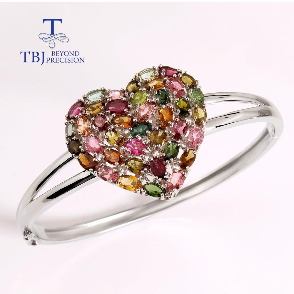 2023 браслет в форме сердца, серебро 925 пробы, натуральный красочный турмалин, изысканные украшения для женщин, жены, хороший подарок