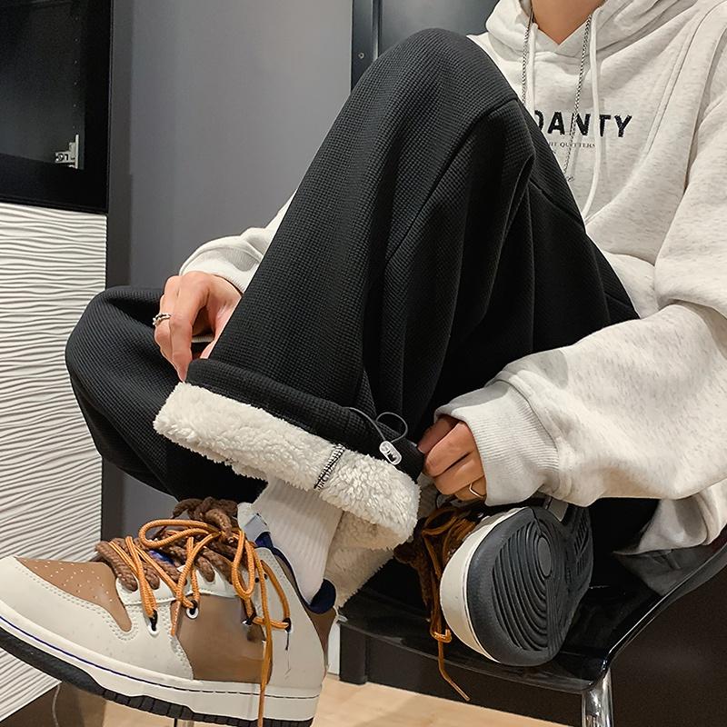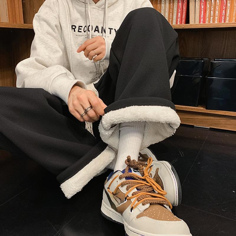 Брюки из овечьего флиса, зимние теплые брюки, мужские толстые повседневные однотонные спортивные штаны из овечьей шерсти, мужские свободные брюки для бега