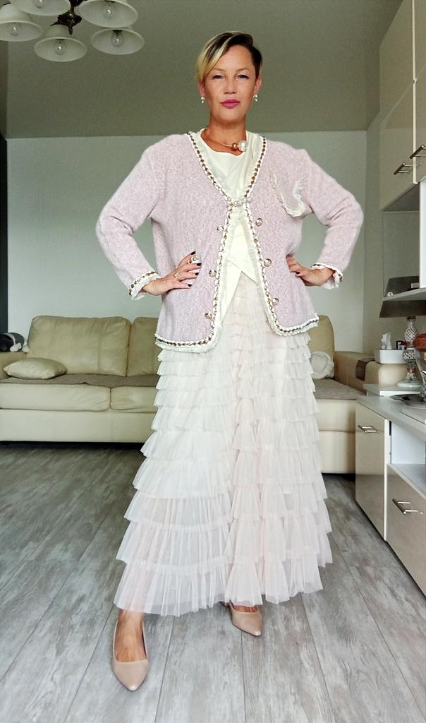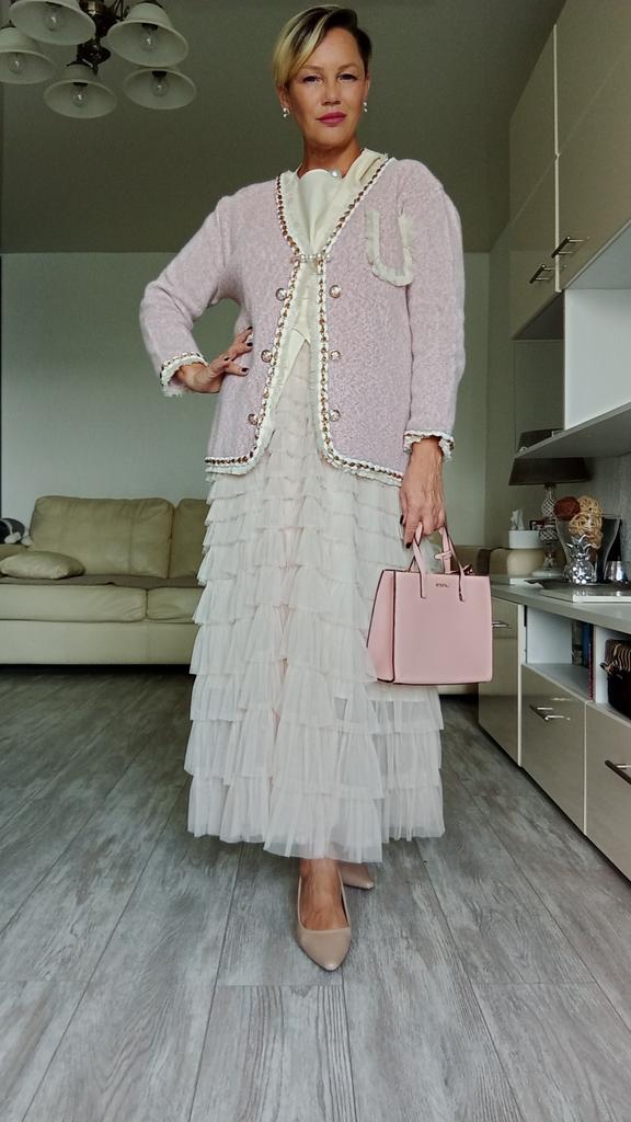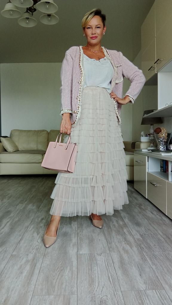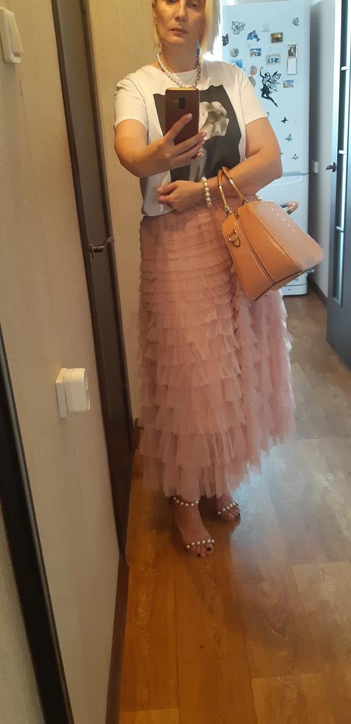 Я знала, что юбка будет БОМБА🥰 но, чтобы настолько!!! 🤩Цвет пыльной розы очень ненавязчивый и его можно сочетать в разных луках: быть"зефиркой"или гранж-леди💃🏼💃🏼💃🏼👍👍👍👍👍Посмотрела в карусели образы Наталья Великой и Надежды Мироновой в данной модели юбки и решила приобрести себе такую же. Не пожалела ничуть... Во-первых, она тебя стройнит, несмотря, на множество воланчиков, во-вторых, для моего роста 176 см отличная длина( почти по щиколотку), в-третьих, юбка под разные образы, т.е и в пир, и в мир...Талия на широкой резинке, которая растягивается и не давит( у меня ОТ-80 см). Юбка очень легкая, подклад похож на хлопковый, закрывает колено. Все СУПЕР!!! СОВЕТУЮ ПРИОБРЕТАТЬ...👍👍👍👍👍
