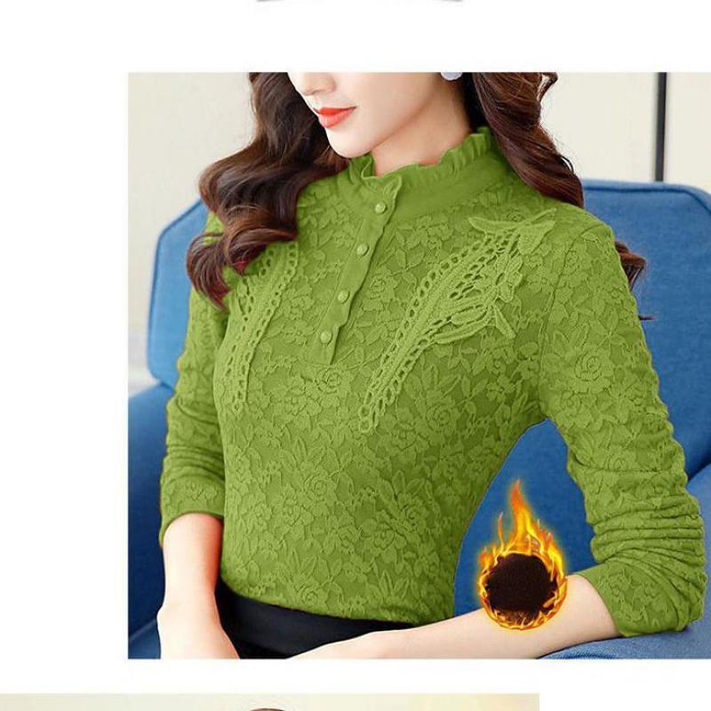 Зимняя модная теплая кружевная рубашка и блузка для женщин, флис ярких цветов
