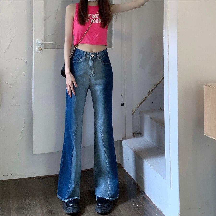 Осень-весна, джинсы, женские джинсовые брюки, винтажные прямые брюки, модные женские однотонные свободные повседневные широкие брюки с кисточками