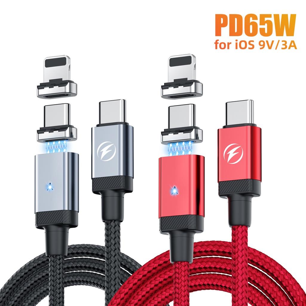 FONKEN Магнитный кабель USB C PD 65 Вт, USB C к типу C, кабель для быстрой зарядки, 27 Вт, тип C к кабелю Lightning для телефонов iPone Samsung, магнитный шнур для передачи данных
