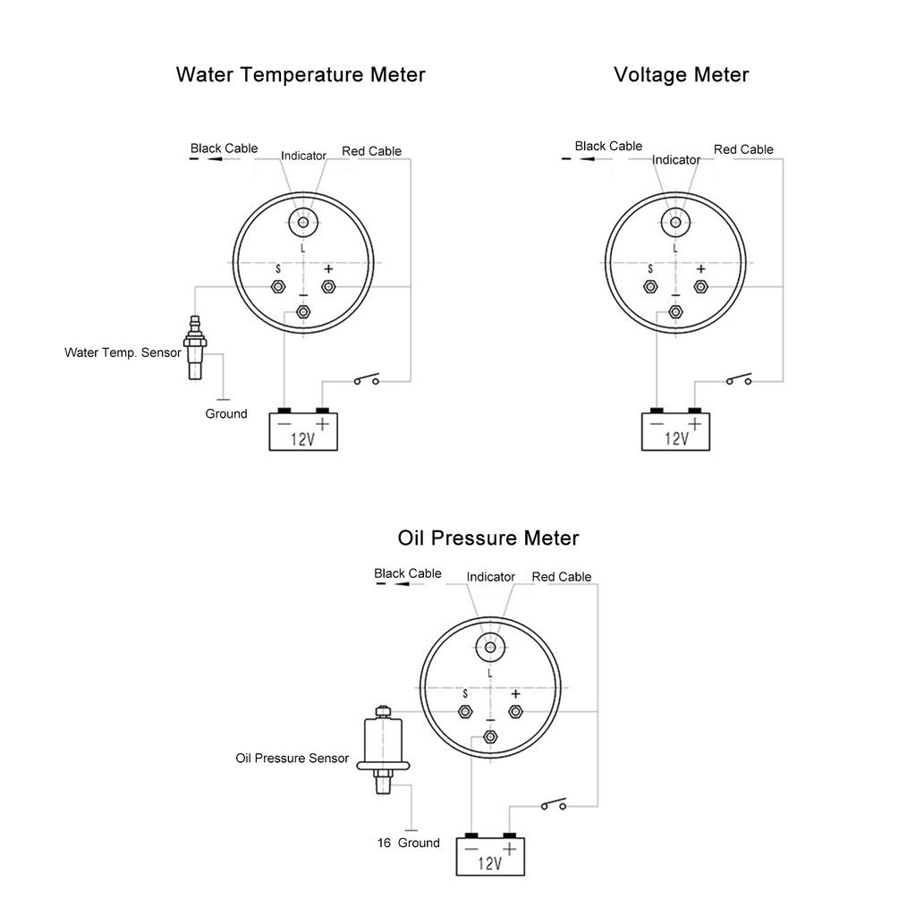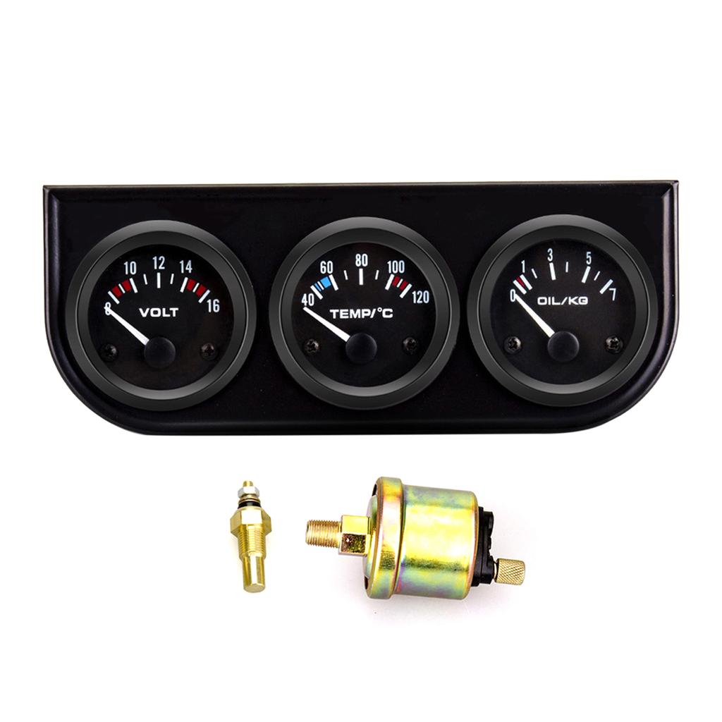 Комплект тройного манометра 2 дюйма(52мм) Вольтметр 3-в-1. Измеритель температуры воды. Измеритель давления масла.