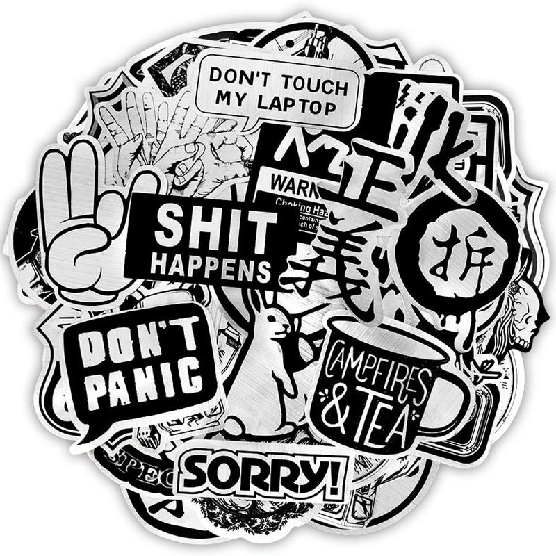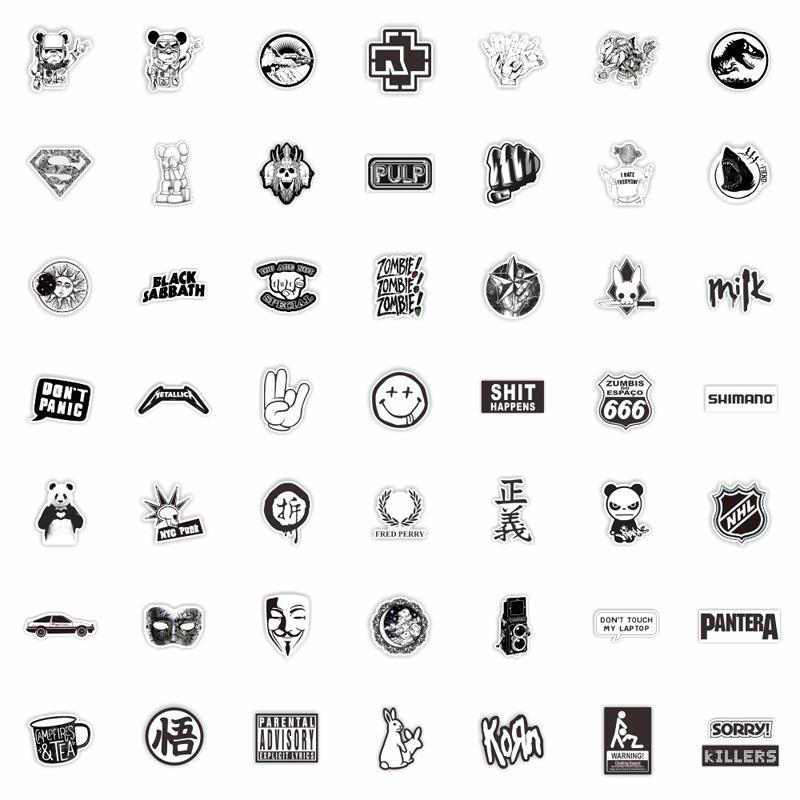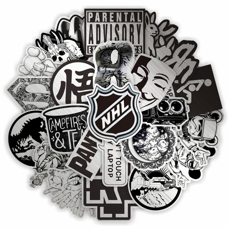 50 шт. металлические черно-белые наклейки в стиле панк, наклейки для скейтборда, наклейки для экстремальных видов спорта, чехол на тележке, кружка для гитары, тетрадь, трендовые наклейки